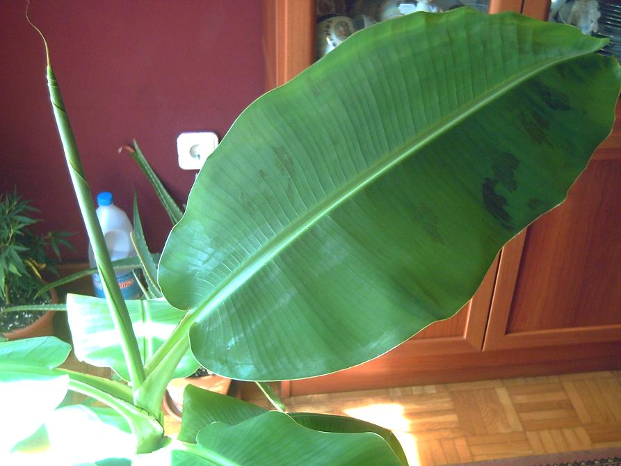 Belladonna Опубликовано 21 апреля, 2009 Автор Жалоба Поделиться Опубликовано 21 апреля, 2009 А как сейчас бананчег поживает? Сильно вырос с того времени? Бананчик поживает хорошо! Сильно невырос, горшок непозволяет, а я все никак подмену ненайду. Вот сегдняшнее фото Недавно произошло маленькое чп, два листика надломились, вернее их надломили, случайно. Я их перевязала слегка, посмотрим... Это самый большой лист, и снова эти пятна странные, я думаю это недостача элементов так выражается))) 1 Цитата Ссылка на комментарий Поделиться на другие сайты Поделиться