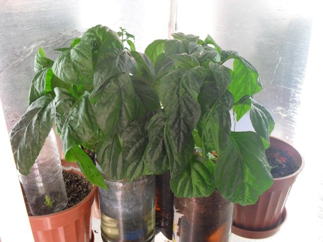 .:m@d:. Опубликовано 30 марта, 2010 Автор Жалоба Поделиться Опубликовано 30 марта, 2010 Ответы на вопросы: По поводу размера горшков сказать сложно, все разные начиная от 1 до 3 литров... Это на глаз, вообщем не большие горшки, помидоры очень много пьют, в отличии от перцев) Маленький размер горшков компенсируется частым поливом))) По поводу роста отпишусь позже, не замерял... на глаз пол метра где то... точнее позже Все растения: Помидоры, перцы ... зацвели при световом режиме 18/6... с этим проблем не возникло, сейчас световой день у них сокращен до 12/12. Перец: 59 дней на фото. 1 Цитата Ссылка на комментарий Поделиться на другие сайты Поделиться