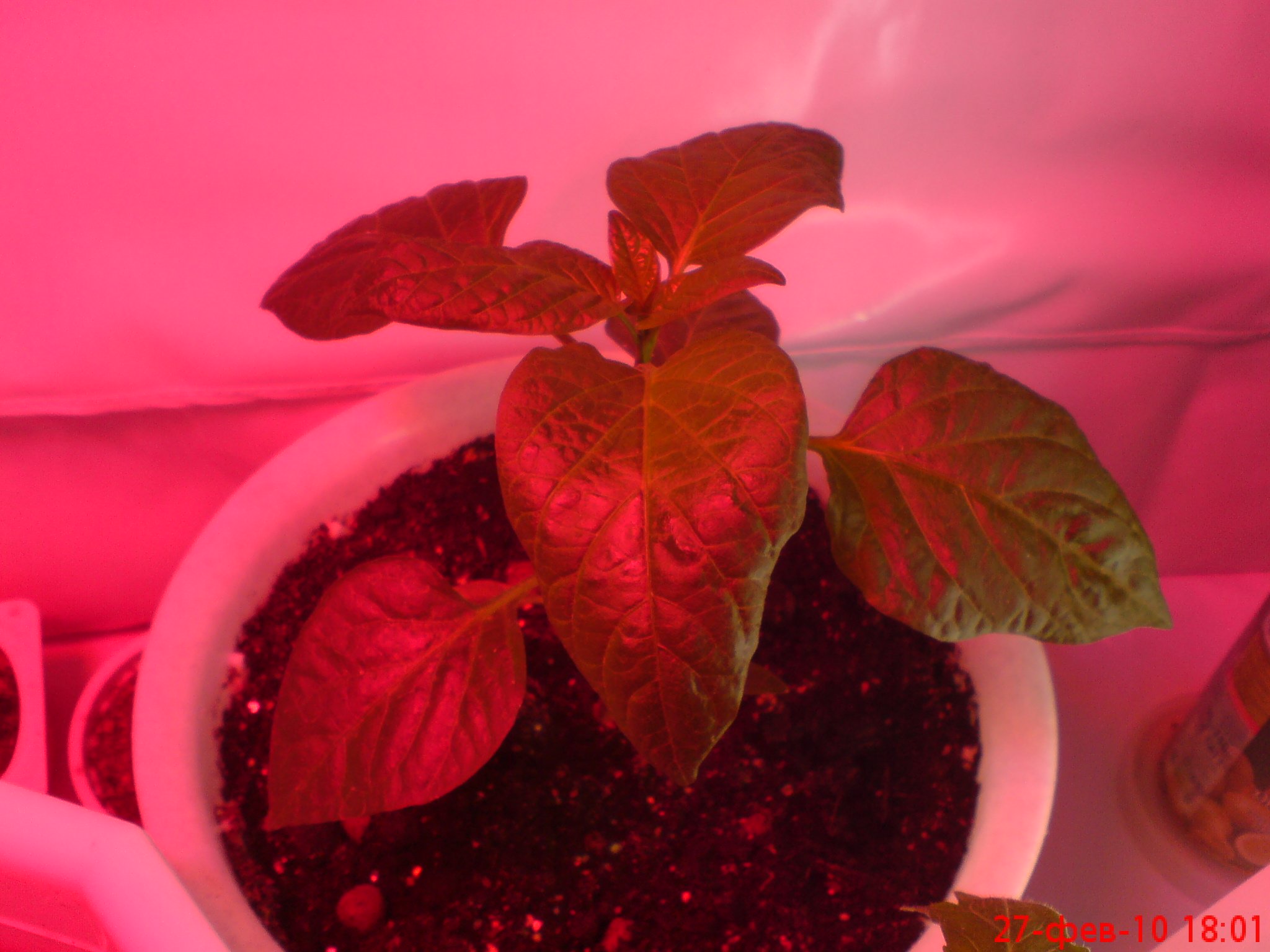 .:m@d:. Опубликовано 3 марта, 2010 Жалоба Поделиться Опубликовано 3 марта, 2010 (изменено) Приветствую всех кто заглянул) сначала немного истории о том как происходило развитие в мини фото отчёте начнём с перца болгарского... Вообщем мне не нравится как выглядит перчик, листья вялые, на стволе краснота - мой диагноз недостаток фосфора и возможно азота, но может у кого есть ещё какое то мнение и он готов им поделиться и помочь в решении проблемы с моими питомцами. Полив обычной водой с магнием в пропорции 1мл на 1литр, в основном на глаз. Удобы не вносил. Сейчас перцу 31 день приблизительно. Изменено 3 марта, 2010 пользователем .:m@d:. Цитата Ссылка на комментарий Поделиться на другие сайты Поделиться