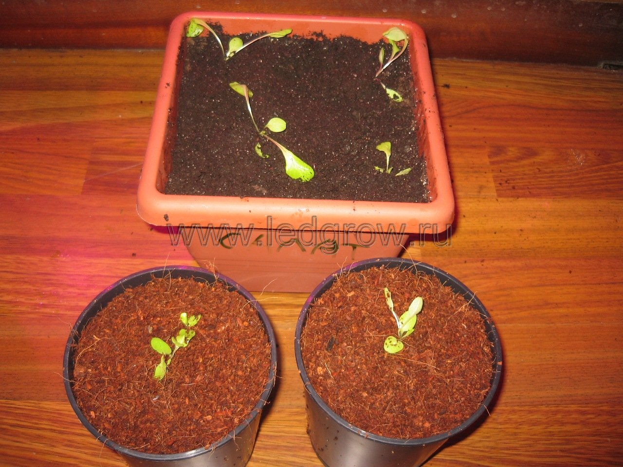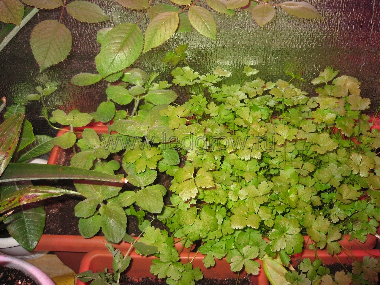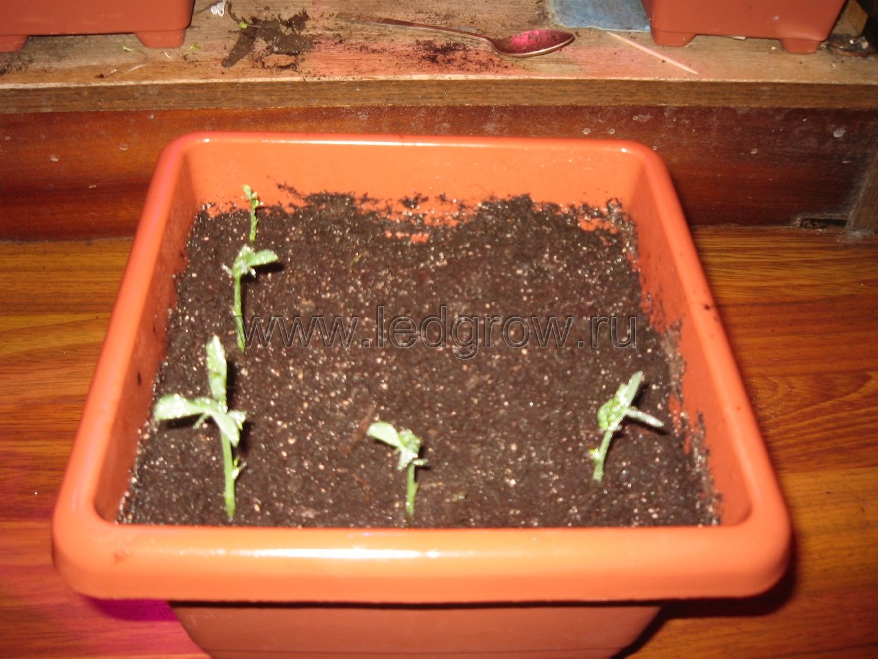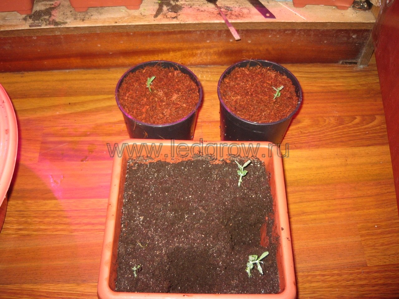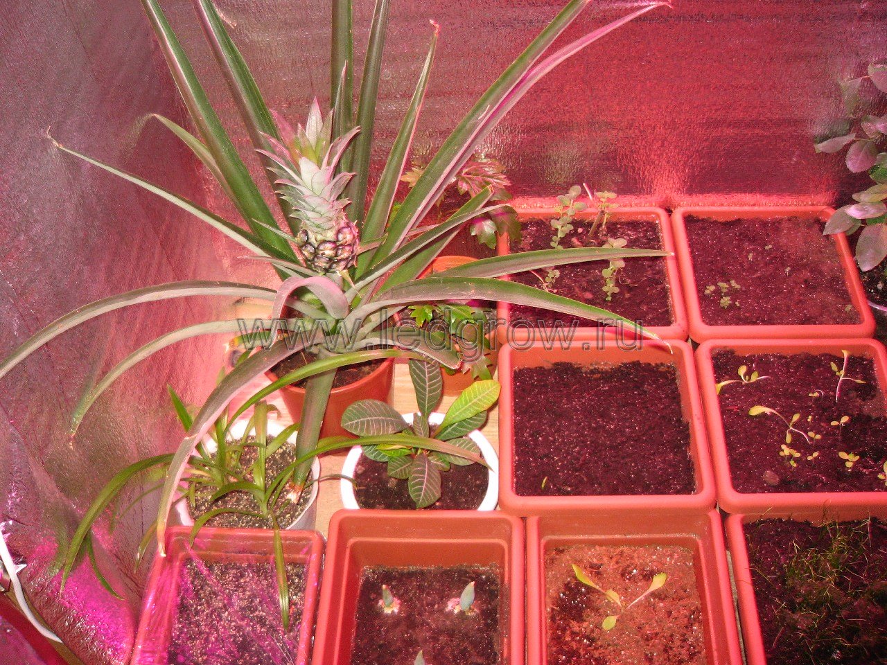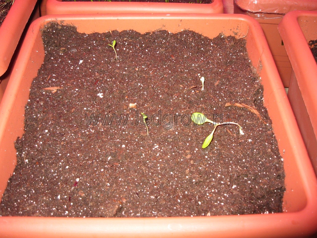 Ledgrow Опубликовано 14 марта, 2010 Жалоба Поделиться Опубликовано 14 марта, 2010 Всех приветствую в моем втором репорте посвященном светодиодам, пожалуйста отметьте для себя заранее, я ничего не продаю и ничего не навязываю мы не страдаем от недостатка клиентов, я просто показываю потенциальные возможности использования светодиодов в домашних условиях и по возможности отвечаю на возникающие вопросы, где вы будете их покупать и будете ли покупать вообще мне все равно, поэтому очень Вас прошу удержаться от нападок в мою сторону по этой теме и прежде чем что то критиковать сделайте лучше меня или хотя бы так же, заранее благодарю за понимание :) Предмет исследования. Особенности GrowSprout. Низкое энергопотребление — лампочка использует только 15 Вт. Минимальная рабочая температура — растения не пострадают даже при полном контакте с лампой. Универсальность — тип цоколя Е-27. Срок службы до 100.000 часов. Безвредный для Вас и окружающей среды. Применение GrowSprout: Дополнительное или основное освещение рассады и клонов. Основное освещение области 15×15 см. Дополнительное освещение растений совместнос металлогалойдной или натриевой лампой для увеличенияурожайности и скрости роста. Характеристики. • Освещаемая площадь до 4 кв. метров* • Тип цоколя Е-27. • Срок службы до 100.000 часов*. • Номинальное напряжение: 220-240V 50Hz. • Макс. мощность: 15W. • Световая мощность: 2250Лм. • Источник света: LED мощностью 1 Вт • Цвет: Красный & Синий (7:2) • Длина волны: Красный - 660 нм, Синий цвет - 450 нм • Рабочая температура: -20°c ~ +50°c • Угол освещения: 120 ° • Размер: 17.5×6 см • Вес: 0,25 кг *данные производителя. Условия выращивания: Шкаф платяной обыкновенный, отражающее покрытие пленэкс, дополнительная вентиляция отсутствует (естественный приток из щелей) Высота - 150 Ширина - 110 Глубина - 60 Площадь - 0.66м2 Задачи:Определить достаточно ли 45 Вт. для освещения площади в 0.66м2 и полноценного существования и развития светолюбивых растений. Цели: Обеспечить себя свежей зеленью, удовлетворить потребности светолюбивых растений в достаточном освещении в осенне-зимний период, реанимировать измученные или больные растения в случае необходимости. Цитата Ссылка на комментарий Поделиться на другие сайты Поделиться