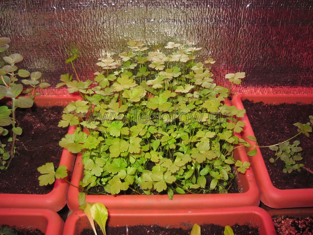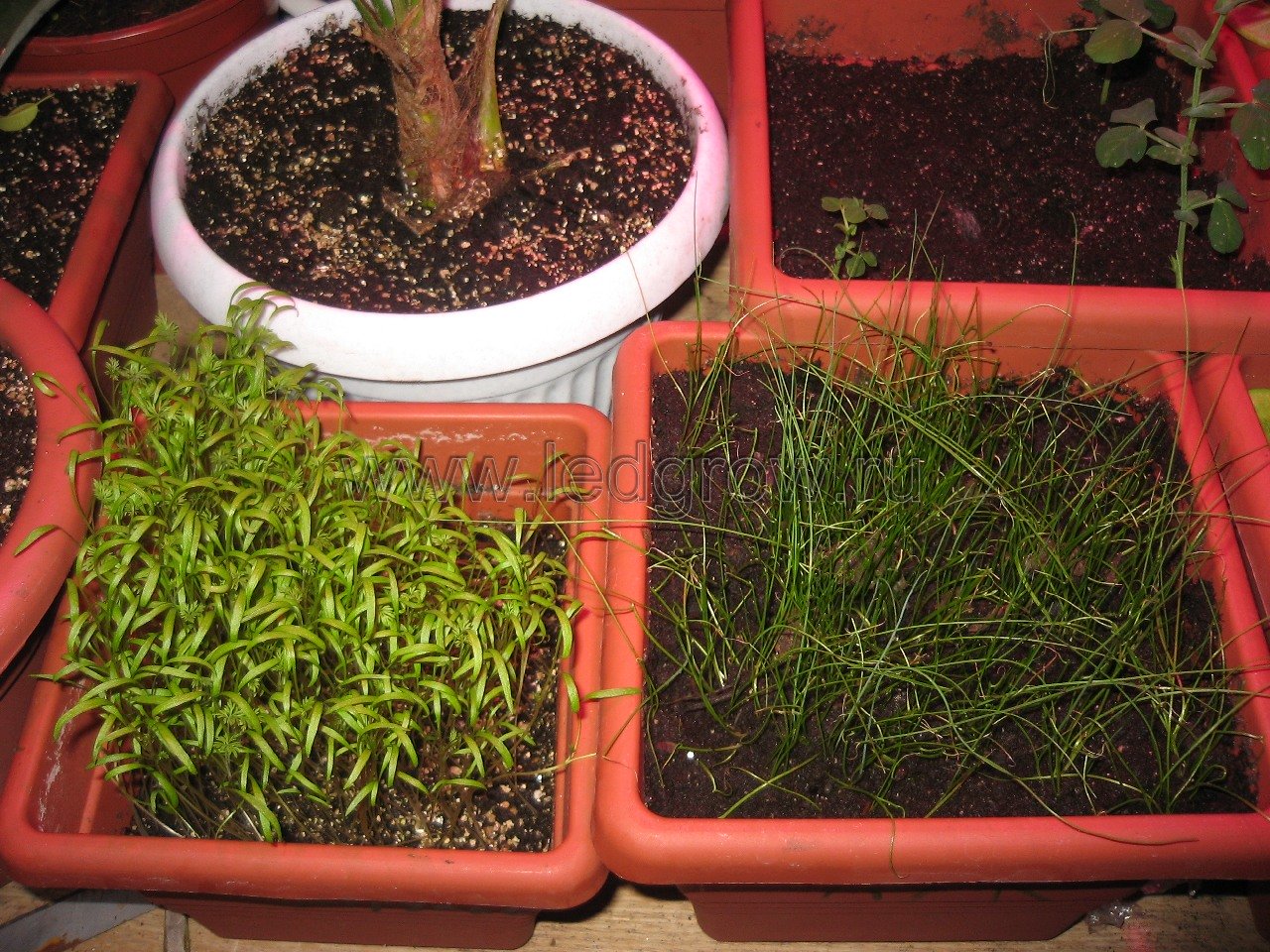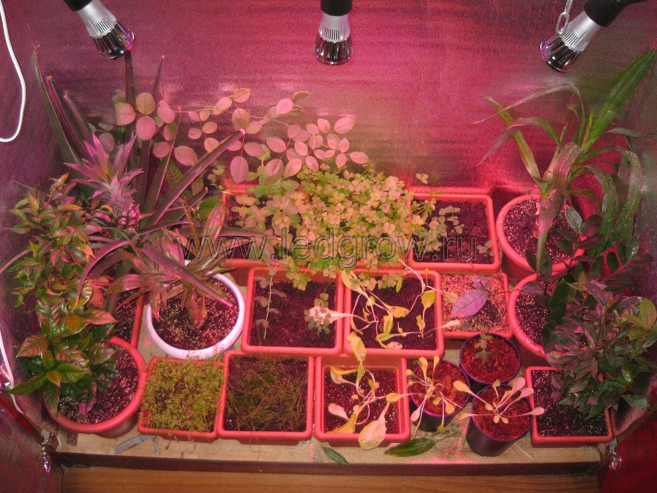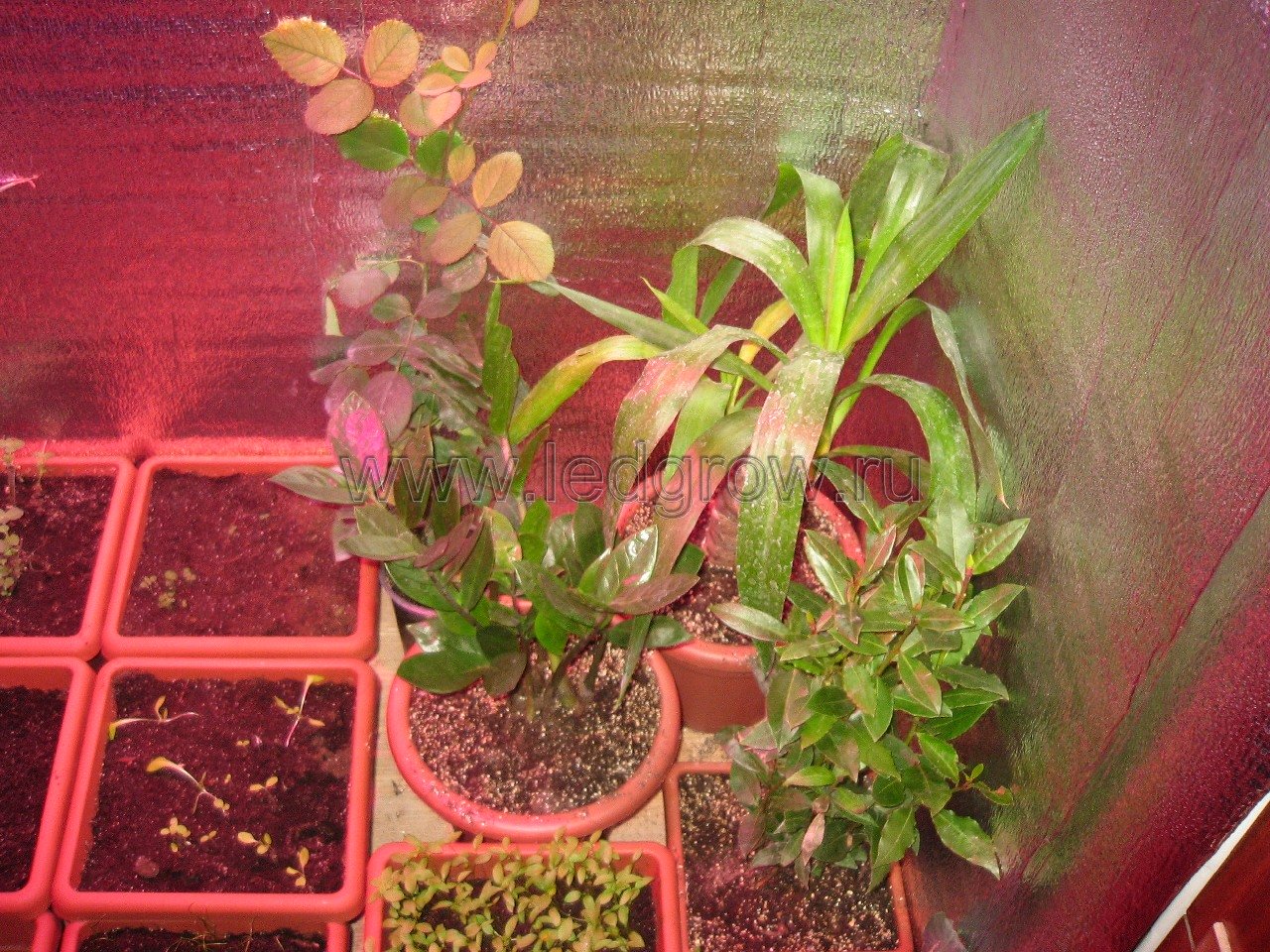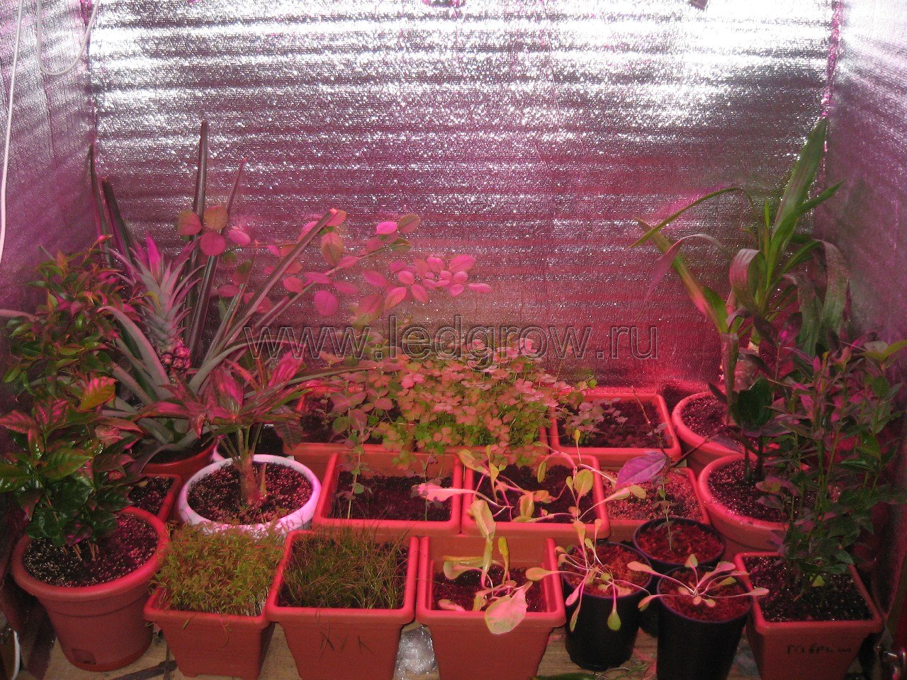 Ledgrow Опубликовано 14 марта, 2010 Жалоба Поделиться Опубликовано 14 марта, 2010 Всех приветствую в моем втором репорте посвященном светодиодам, пожалуйста отметьте для себя заранее, я ничего не продаю и ничего не навязываю мы не страдаем от недостатка клиентов, я просто показываю потенциальные возможности использования светодиодов в домашних условиях и по возможности отвечаю на возникающие вопросы, где вы будете их покупать и будете ли покупать вообще мне все равно, поэтому очень Вас прошу удержаться от нападок в мою сторону по этой теме и прежде чем что то критиковать сделайте лучше меня или хотя бы так же, заранее благодарю за понимание :) Предмет исследования. Особенности GrowSprout. Низкое энергопотребление — лампочка использует только 15 Вт. Минимальная рабочая температура — растения не пострадают даже при полном контакте с лампой. Универсальность — тип цоколя Е-27. Срок службы до 100.000 часов. Безвредный для Вас и окружающей среды. Применение GrowSprout: Дополнительное или основное освещение рассады и клонов. Основное освещение области 15×15 см. Дополнительное освещение растений совместнос металлогалойдной или натриевой лампой для увеличенияурожайности и скрости роста. Характеристики. • Освещаемая площадь до 4 кв. метров* • Тип цоколя Е-27. • Срок службы до 100.000 часов*. • Номинальное напряжение: 220-240V 50Hz. • Макс. мощность: 15W. • Световая мощность: 2250Лм. • Источник света: LED мощностью 1 Вт • Цвет: Красный & Синий (7:2) • Длина волны: Красный - 660 нм, Синий цвет - 450 нм • Рабочая температура: -20°c ~ +50°c • Угол освещения: 120 ° • Размер: 17.5×6 см • Вес: 0,25 кг *данные производителя. Условия выращивания: Шкаф платяной обыкновенный, отражающее покрытие пленэкс, дополнительная вентиляция отсутствует (естественный приток из щелей) Высота - 150 Ширина - 110 Глубина - 60 Площадь - 0.66м2 Задачи:Определить достаточно ли 45 Вт. для освещения площади в 0.66м2 и полноценного существования и развития светолюбивых растений. Цели: Обеспечить себя свежей зеленью, удовлетворить потребности светолюбивых растений в достаточном освещении в осенне-зимний период, реанимировать измученные или больные растения в случае необходимости. Цитата Ссылка на комментарий Поделиться на другие сайты Поделиться