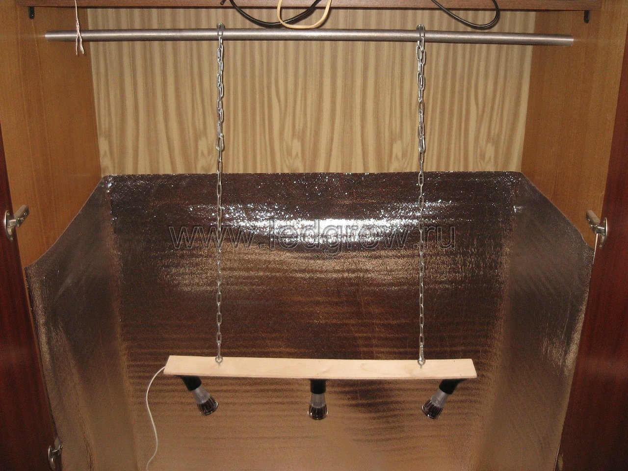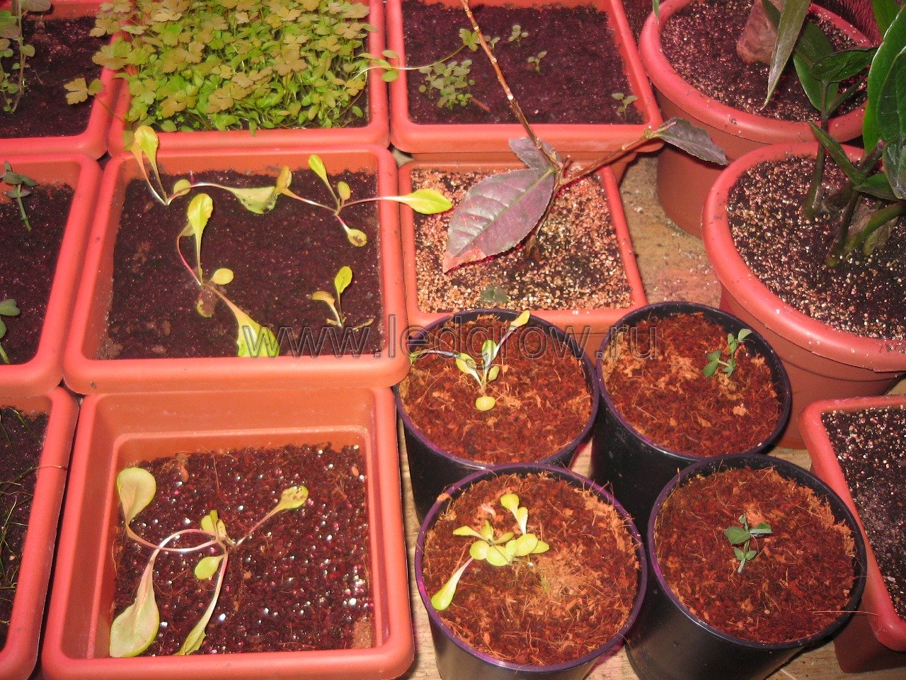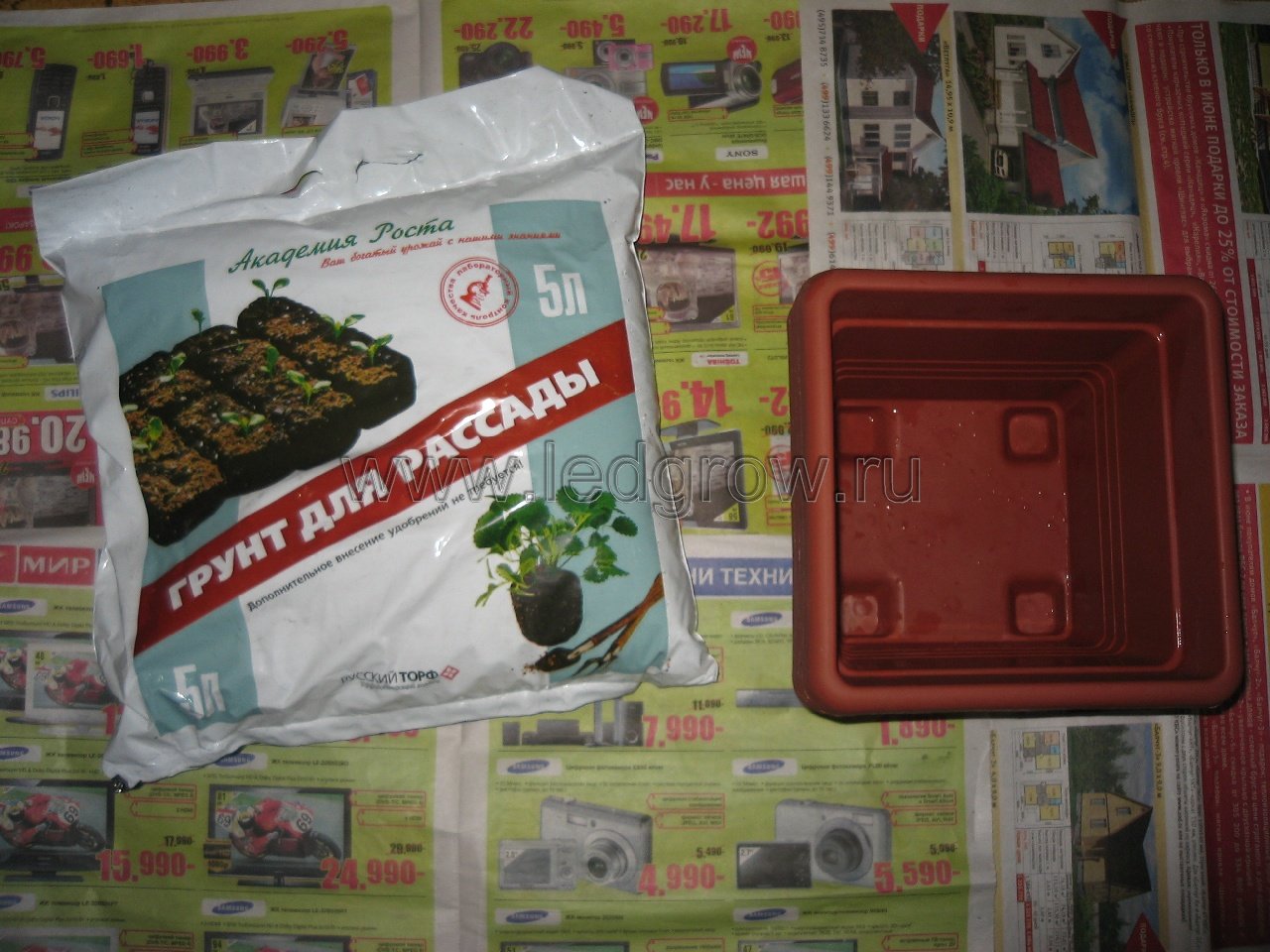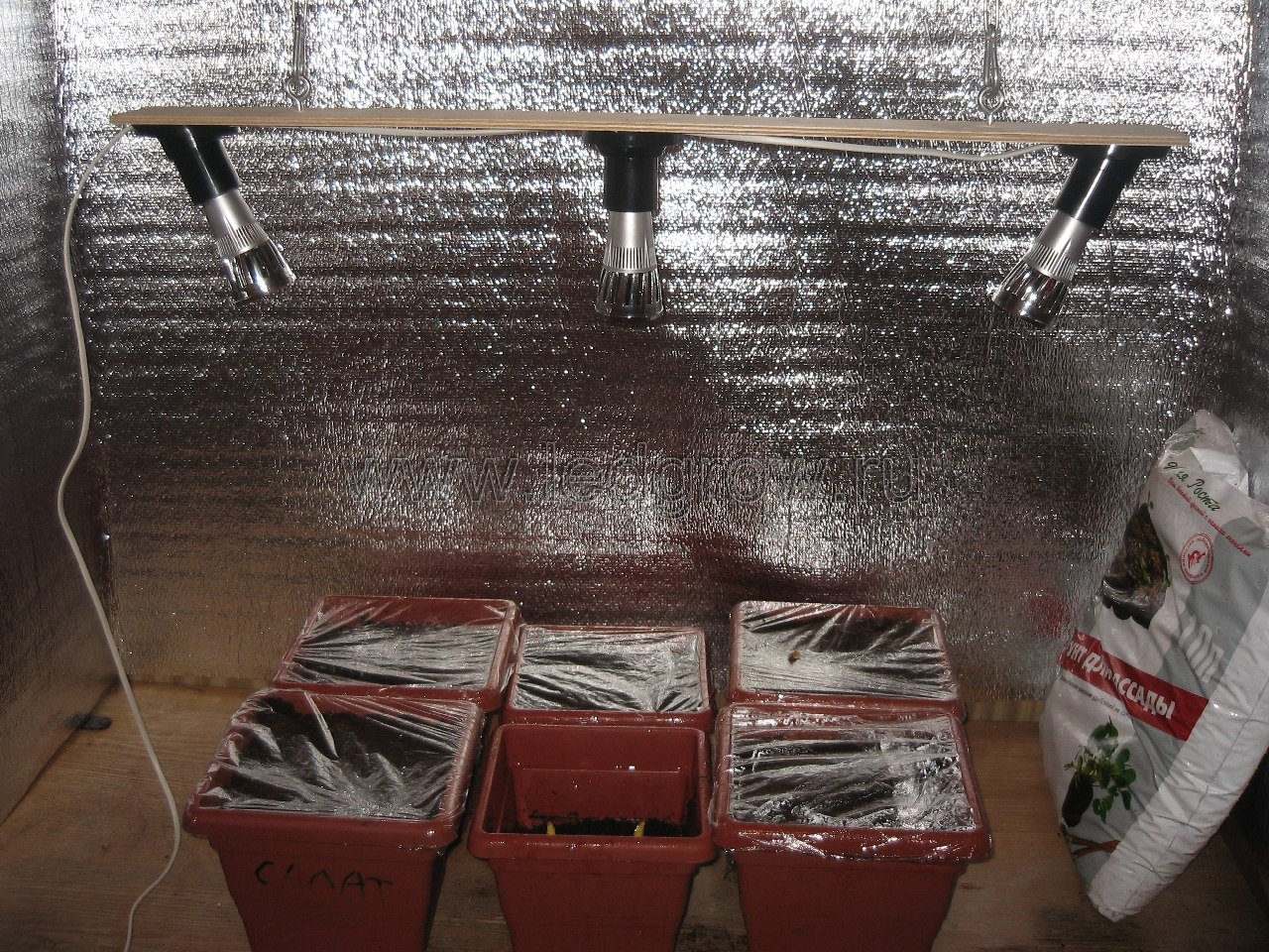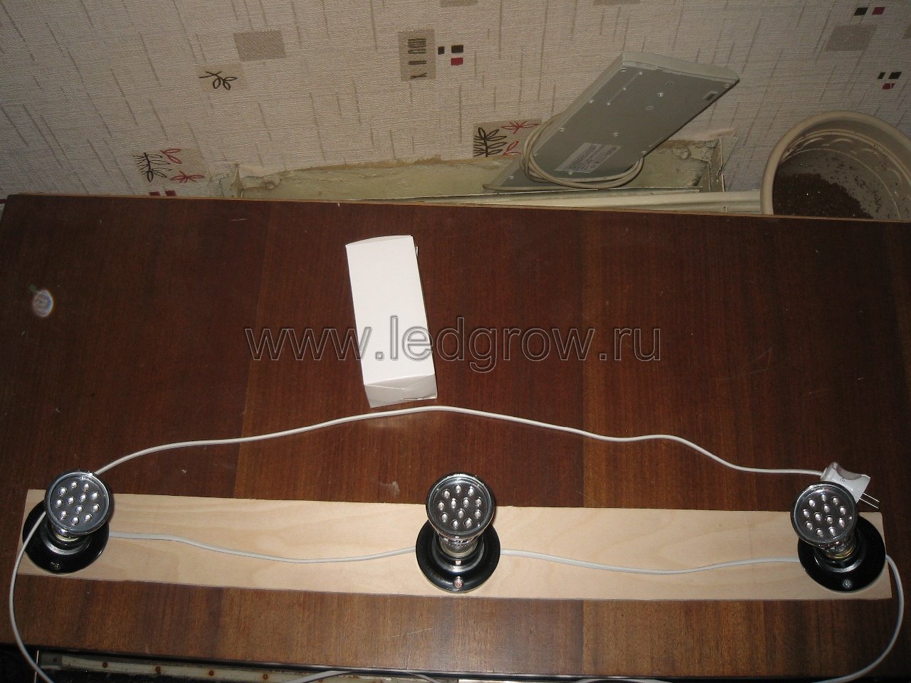 Ledgrow Опубликовано 14 марта, 2010 Жалоба Поделиться Опубликовано 14 марта, 2010 Всех приветствую в моем втором репорте посвященном светодиодам, пожалуйста отметьте для себя заранее, я ничего не продаю и ничего не навязываю мы не страдаем от недостатка клиентов, я просто показываю потенциальные возможности использования светодиодов в домашних условиях и по возможности отвечаю на возникающие вопросы, где вы будете их покупать и будете ли покупать вообще мне все равно, поэтому очень Вас прошу удержаться от нападок в мою сторону по этой теме и прежде чем что то критиковать сделайте лучше меня или хотя бы так же, заранее благодарю за понимание :) Предмет исследования. Особенности GrowSprout. Низкое энергопотребление — лампочка использует только 15 Вт. Минимальная рабочая температура — растения не пострадают даже при полном контакте с лампой. Универсальность — тип цоколя Е-27. Срок службы до 100.000 часов. Безвредный для Вас и окружающей среды. Применение GrowSprout: Дополнительное или основное освещение рассады и клонов. Основное освещение области 15×15 см. Дополнительное освещение растений совместнос металлогалойдной или натриевой лампой для увеличенияурожайности и скрости роста. Характеристики. • Освещаемая площадь до 4 кв. метров* • Тип цоколя Е-27. • Срок службы до 100.000 часов*. • Номинальное напряжение: 220-240V 50Hz. • Макс. мощность: 15W. • Световая мощность: 2250Лм. • Источник света: LED мощностью 1 Вт • Цвет: Красный & Синий (7:2) • Длина волны: Красный - 660 нм, Синий цвет - 450 нм • Рабочая температура: -20°c ~ +50°c • Угол освещения: 120 ° • Размер: 17.5×6 см • Вес: 0,25 кг *данные производителя. Условия выращивания: Шкаф платяной обыкновенный, отражающее покрытие пленэкс, дополнительная вентиляция отсутствует (естественный приток из щелей) Высота - 150 Ширина - 110 Глубина - 60 Площадь - 0.66м2 Задачи:Определить достаточно ли 45 Вт. для освещения площади в 0.66м2 и полноценного существования и развития светолюбивых растений. Цели: Обеспечить себя свежей зеленью, удовлетворить потребности светолюбивых растений в достаточном освещении в осенне-зимний период, реанимировать измученные или больные растения в случае необходимости. Цитата Ссылка на комментарий Поделиться на другие сайты Поделиться