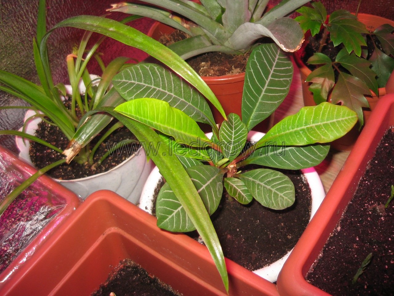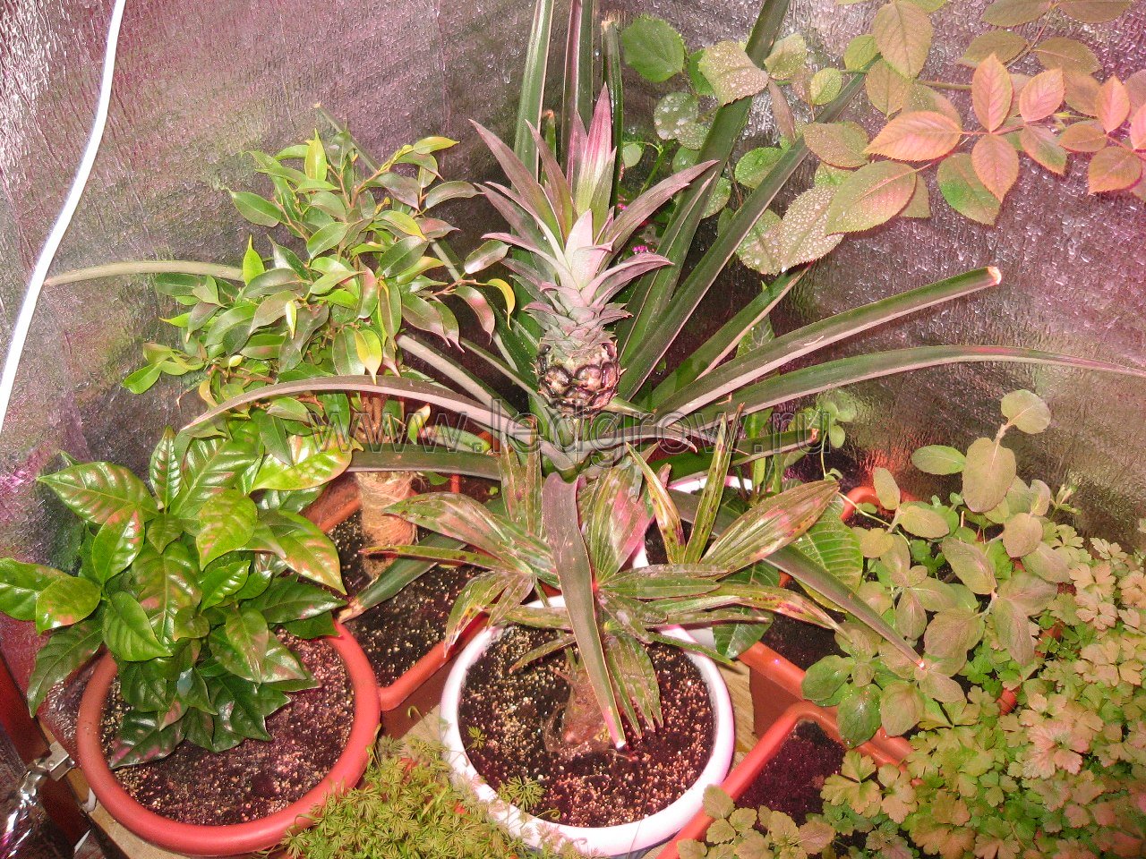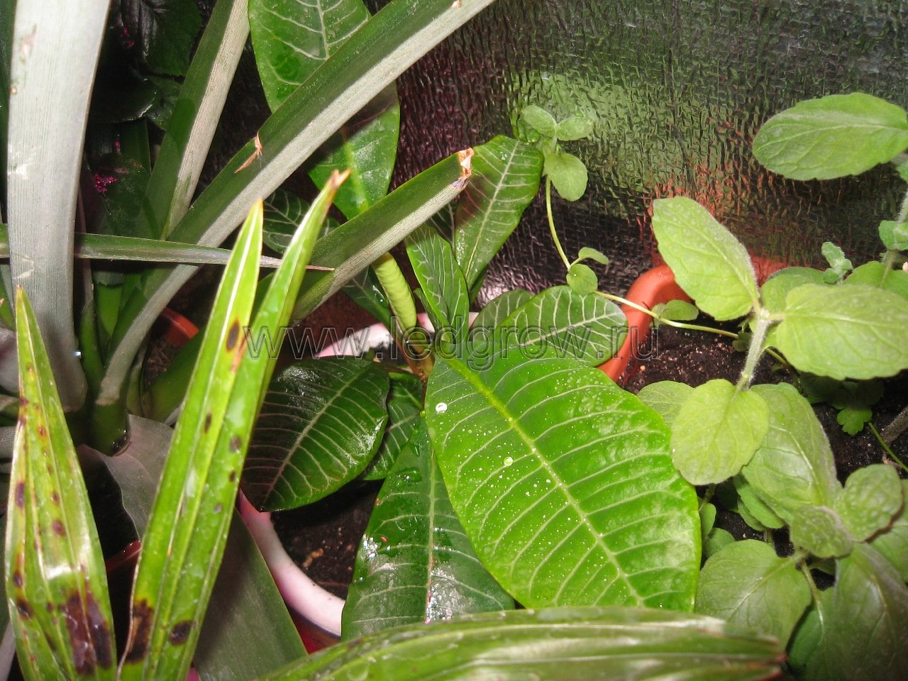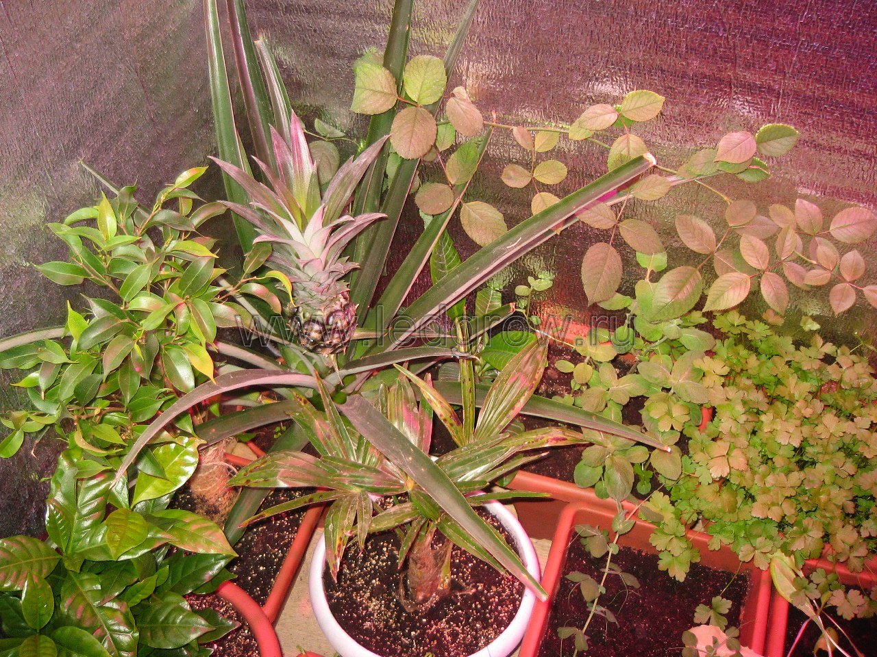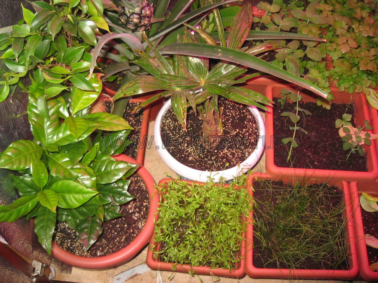 Ledgrow Опубликовано 14 марта, 2010 Автор Жалоба Поделиться Опубликовано 14 марта, 2010 Подопытные: Ананас крупнохохолковый - Ananas comosus variegatus Семейство: Бромелиевые, Bromeliaceae. Происхождение: Тропики центральной и Южной Америки. Время цветения: В зависимости от культуры. Все виды ананаса с трудом цветут в комнатных условиях. Взрослые экземпляры большинства видов ананаса образуют розовые соцветия, на месте которых, если растение содержать в теплых и влажных условиях, после окончания цветения развиваются душистые, но несъедобные соплодия. Ананасы выращивают преимущественно ради красивой листвы. Ананас крупнохохолковый (Ananas comosus) с серо-зелеными листьями, покрытыми чешуйками и с острыми шипами по краю, пестролистная форма - Ананас крупнохохолковый вариегатный (Ananas comosus variegatus) с бело-полосатыми листьями. Ананас прицветниковый (Ananas bracteatus) с ярко-красными прилистниками и желтой каймой по краю листьев, Ананас карликовый (Ananas nanus) – это небольшое растение с 20-30см листьями без шипов. Ананас крупнохохолковый обладает лекарственными свойствами. Почва: Питательные субстраты с содержанием торфа и песка, pH около 5. Освещение: В светлом месте. Полив: Летом обильно поливать водой с малым содержанием кальция. Зимой и то и другое сильно сократить. Удобрения: Еженедельно подкармливать. Влажность воздуха: Требует опрыскивания листьев летом. Температура: Нуждается в тепле, зимой не ниже 12° C. Размножение: Верхушечными побегами и прикорневыми детками;. Можно вырастить из верхушки плода (подробнее см. ниже "личные наблюдения"). Вредители, болезни: Щитовка, филлоксера; коричневые кончики листьев- сухой воздух. Камелия(Чай китайский) – Camellia Семейство: Чайные (Theaceae). Родина: Юго-Восточная и Восточная Азия. Цветение: ежегодно зимой. Рост: средний. Свет: яркий рассеянный. Растение следует оберегать от прямых солнечных лучей. Температура: в весенне-летний период 20-25°C. Для закладки цветочных почек требуется температура 18—20°C, а во время цветения в декабре — феврале, напротив, 8—12°C. Полив: регулярный все сезоны. Летом обильный, при прохладном зимнем содержании осторожный. Влажность воздуха: высокая. Растение следует опрыскивать. Подкормка: раз в три недели камелии подкармливают полным минеральным удобрением из расчета 1 г/л. Обрезка: весной верхушки побегов прищипывают, чтобы растение лучше ветвилось. В октябре-ноябре делают обрезку побегов для стимуляции роста пазушных почек. Период покоя: не выражен. Пересадка: молодые камелии пересаживают ежегодно. Цветущие экземпляры пересаживают каждые 2 года. Пересадку проводят весной Размножение: свежими семенами и черенками. (Растение досталось мне почти мертвым, первоначально не был уверен выживет ли поэтому отдельных фоток нету, но на общих фотографиях можно увидеть) Лавр благородный — Laurus Семейство: Лавровые (Lauraceae). Родина: Средиземноморье, Канарские острова. Цветение: в апреле-мае. Рост: медленный. Свет: яркий. Растение способно переносить прямые солнечные лучи. Температура: в летнее время 20-26C, осенью температуру плавно понижают, зимой содержат при температуре не выше 12-15C, в этом случае зимовка протекает менее болезненно для растения. Полив: летом обильный. К осени количество поливов уменьшают. Зимой поливают ограниченно, не допуская полного высыхания земляного кома. Влажность воздуха: растение следует регулярно опрыскива