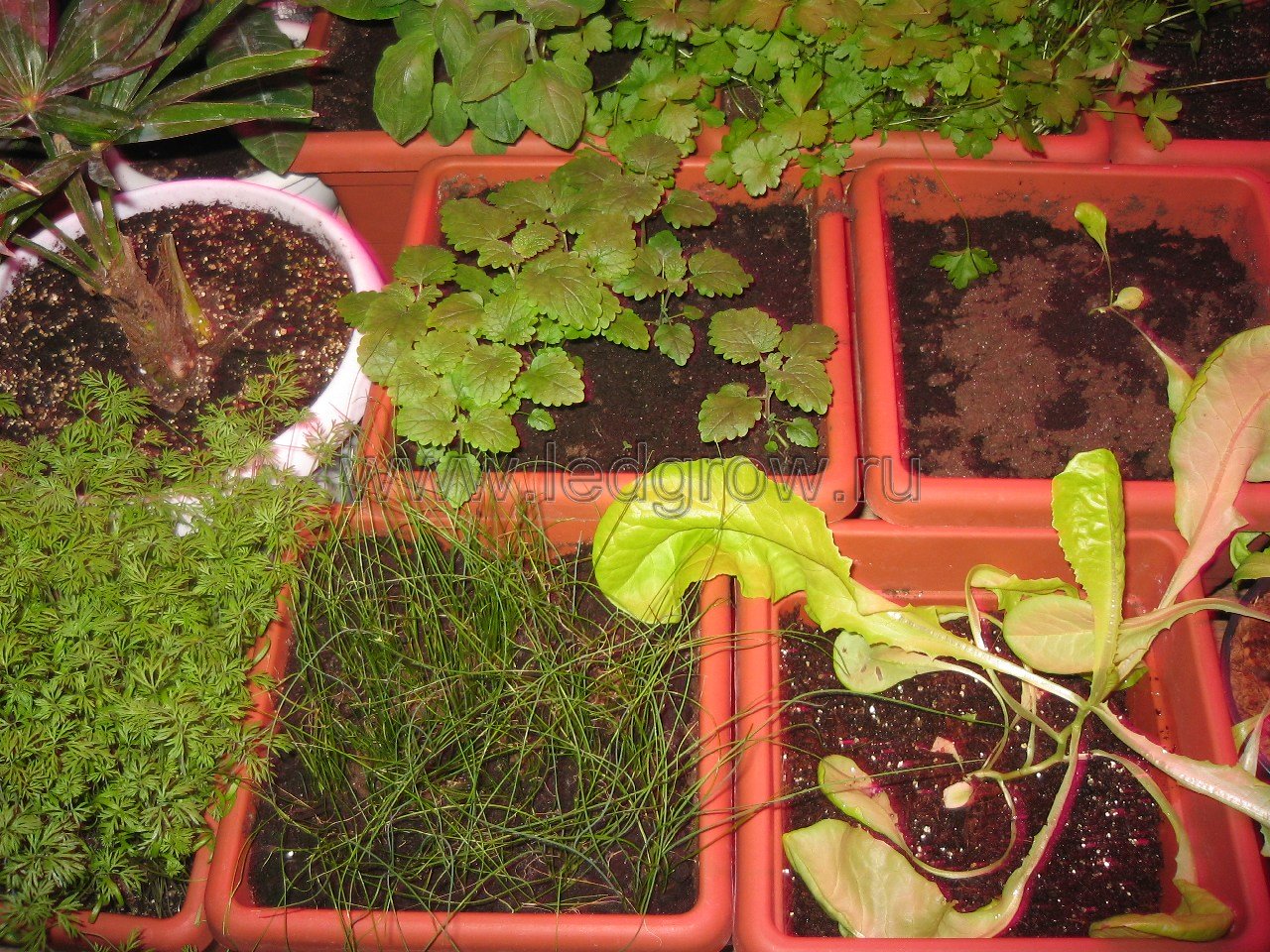 Ledgrow Опубликовано 14 марта, 2010 Автор Жалоба Поделиться Опубликовано 14 марта, 2010 Неопределенный вид мяты. Стояла на восточном окне света сильно не хватало поэтому вид такой неказистый. Мелиса лимонная, петрушка, укроп, салат маслянистый, лук шнитт. Семена специально не подбирал, что валялось в шкафу то и посадил. Цитата Ссылка на комментарий Поделиться на другие сайты Поделиться