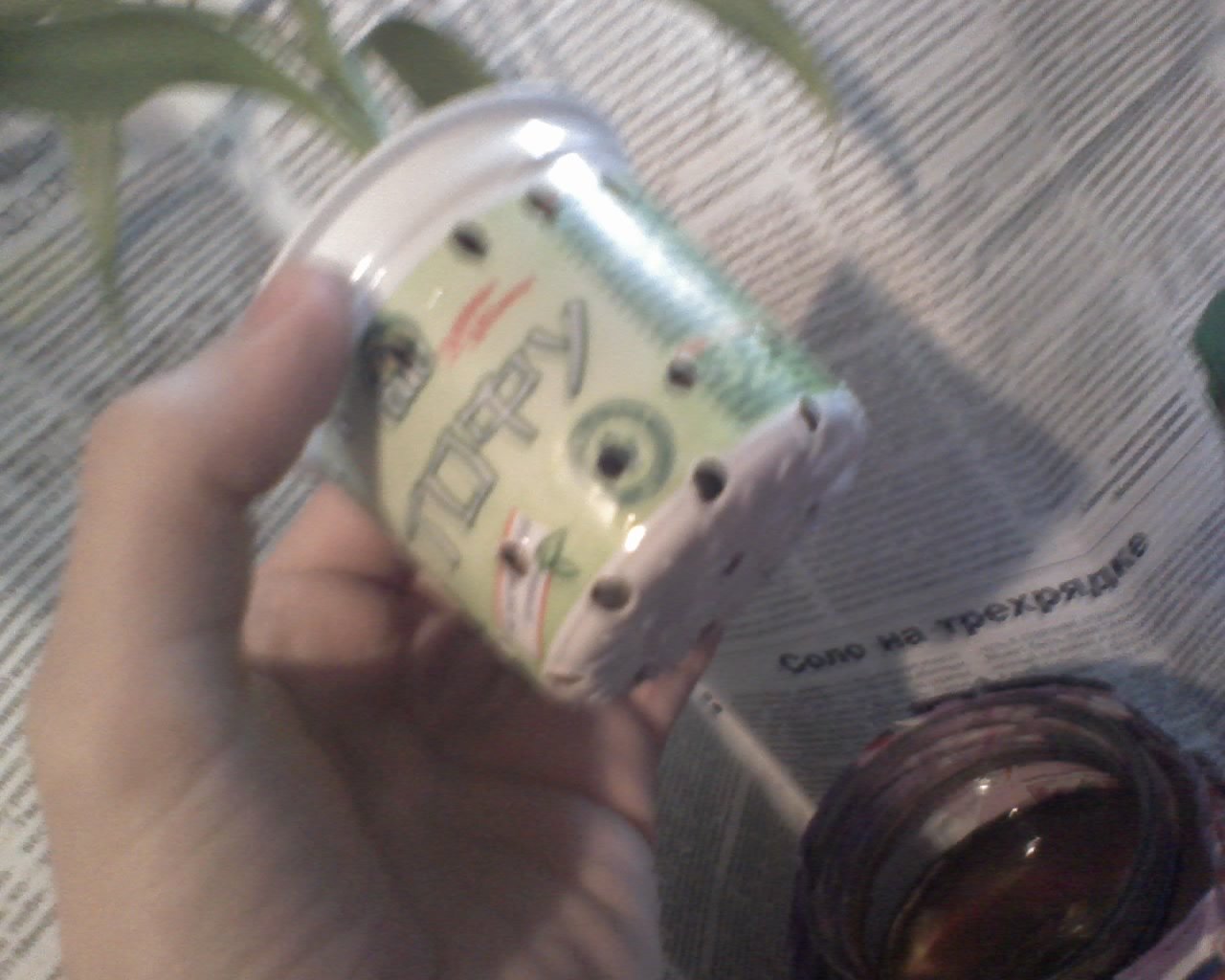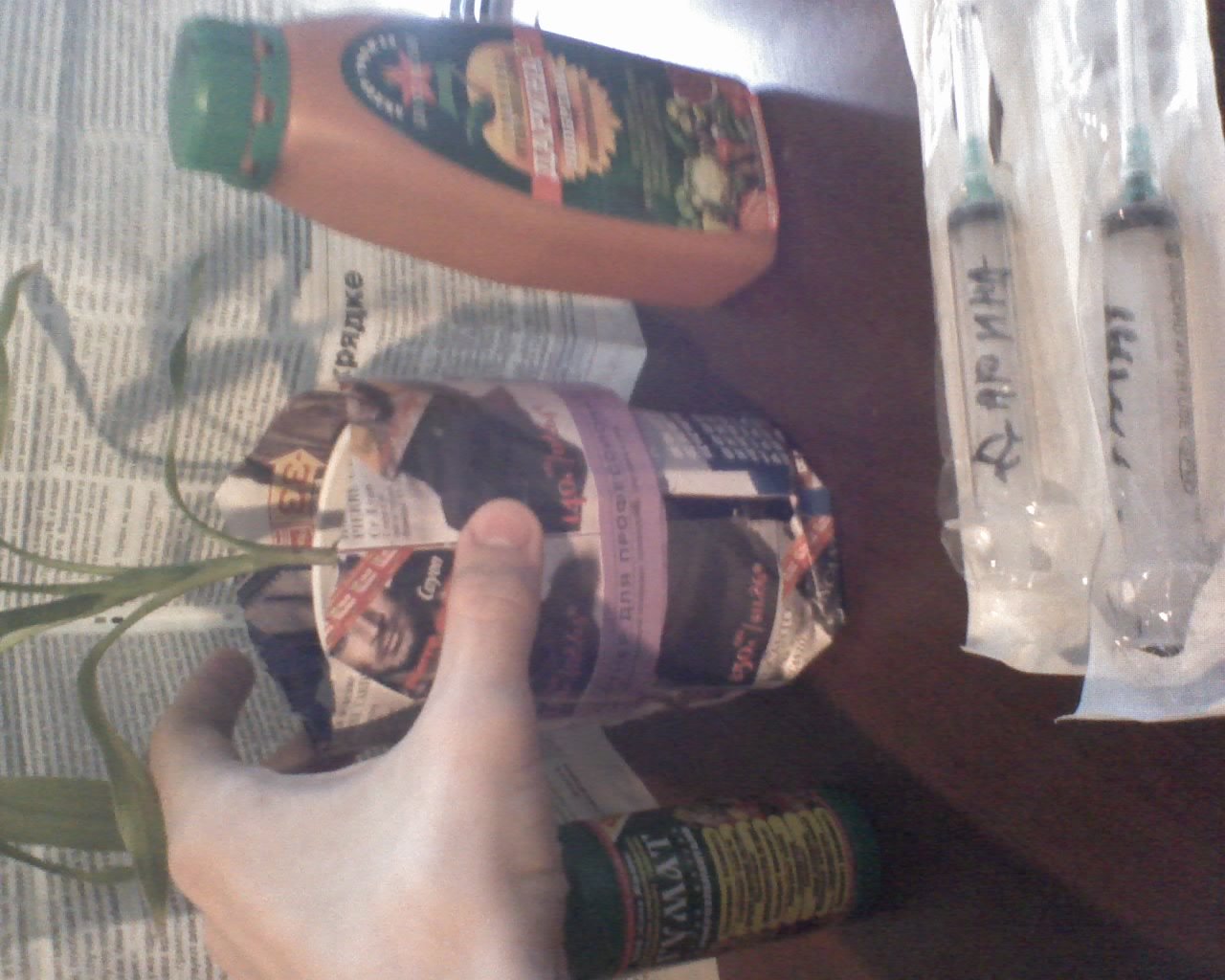 xLGSx Опубликовано 21 марта, 2010 Жалоба Поделиться Опубликовано 21 марта, 2010 Вот форум читал, и увидел что раствор для гидры можно сделать из концентрата удобрения. И о чудо, у меня 2ой месяц в банке валялся кусок от побега бамбука, у него даже корешки имеются. Ну я подумал, вчера сходил в магазини посмотрел, что у них есть. Сегодня утром туда вернулся и купил там 1. Дренаж(керамзит) 30р 1 литр 2. Супер концентрат удобрения 50р 120мл 3. Большую банку удобрения 15р 0,5 литра ИТОГО: 95р Все В наличие уже было банка стеклянная 800мл Пластиковый стаканчик из под "ТОФУ" на 150г Журнал - каталог Бутылка 0.5 л из под минералки 2 шприца 10мл как вес было 1. Взял гвоздик, на плите накалил и наделал дырок в пластиковом стаканчике 2. Насыпал в него керамзит и промыл водой 3. Взял бутылку 0.5 литра налил воды и булькнул 1/4 дозы 1 удобрения и второго столькоже 4. Обклеил банку бумажкой из журнала, сделал прорезь, чтобы было видно уровень воды, поверх наклеил еще бумажку, принцип как на телефоне "Слайдер" поднял бумажку, посмотрел уровень, опустил обратно 5. Запихнул бамбук в стаканчик, присыпал керамзитом, и погрузил в банку с раствором будем наблюдать... PS этот експеремент направлен на изучение САМЫХ ДЕШЕВЫХ гидросистем PSS Фото на телефон, фотик сломался 1 Цитата Ссылка на комментарий Поделиться на другие сайты Поделиться