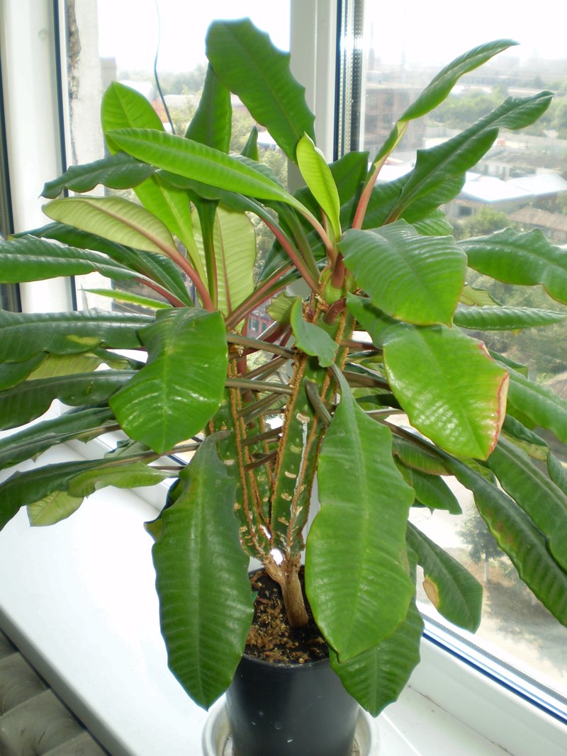 Вася Душанбэ Опубликовано 21 июля, 2010 Жалоба Поделиться Опубликовано 21 июля, 2010 Лорики уже во всю цвели, все было хорошо, но руки и слишком большое внимание послужили причиной жесткого передоза МФК от которого они и погибли. Промывка субстракта конечно могла решить эту проблему и избежать беды, но только если бы это случилось на день раньше, а так было уже слишком поздно и запущено. Жалко их, но есть еще аут, поэтому на душе чуть легче, чем если бы его не было. Короче! Лорок нету, а бокс стоит, ему ведь пох на передозы вот и стоит себе. Немного поломав голову засунул туда помидор, который стоял рядом с боксом, но это меня едва ли удовлетворило, еще через пару секунд я уже углядел мамин куст с непонятным кактусо-древесным хотя скорее кактусо-лиственным строением на подоконнике. - А чё это мама растет у тебя? - Молочай Ваня. - WTF мама? Позже посредством googlения было выявлено, как это называть правильно, Молочай беложильчатый (Euphorbia leuconeura) Молочай, размножает себя, раскидывая семена налево и направо, одно такое проросло в его горшке, после обнаружения он был выковырнут столовой ложкой и перемещен в маленький горшочек в землю от погибших Лорок перемешанную с корневином так же и полит был растворенным корневином в граненом стакане. Теперь ждем укоренения, через недельку может отправится под ДНАТ. Хотя хз, вычитал, что растение светолюбиво, но все же от палящих летних лучей солнца его все же стоит затенять. По удобрениям пока ничего не понял, рекомендуют удобрять кактусовыми удобами, а в них почти нету азота, потому что кактусам от азота становится дурно, лопаются, вытягиваются становятся похожие на соплю одним словом. Почитаю еще, удобрять до следующей пересадки буду по востребованию или вообще не буду. Кто может, что-то посоветовать, буду раз слушать. Мир. Цитата Ссылка на комментарий Поделиться на другие сайты Поделиться