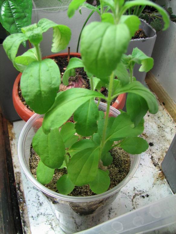 LEZVIE81 Опубликовано 7 марта, 2011 Автор Жалоба Поделиться Опубликовано 7 марта, 2011 (изменено) стевия . капризная зараза ... но никуда и она не денется как я и писал ранее - не стоит долго держать растение в парнике . теперь адаптировать его долго придётся . поставил ,вместо целого стаканчика, стаканчик с отверстиями , чтобы влажность понизить . 8 семян из 10 прорасли . это есть вообще гуд . клонироваться это растение будет легко , судя по воздушным корням из междоузлий (мелиссу теперь буду клонировать иначе ... у неё тоже из междоузлий корни идут) . Изменено 7 марта, 2011 пользователем LEZVIE81 Цитата Ссылка на комментарий Поделиться на другие сайты Поделиться