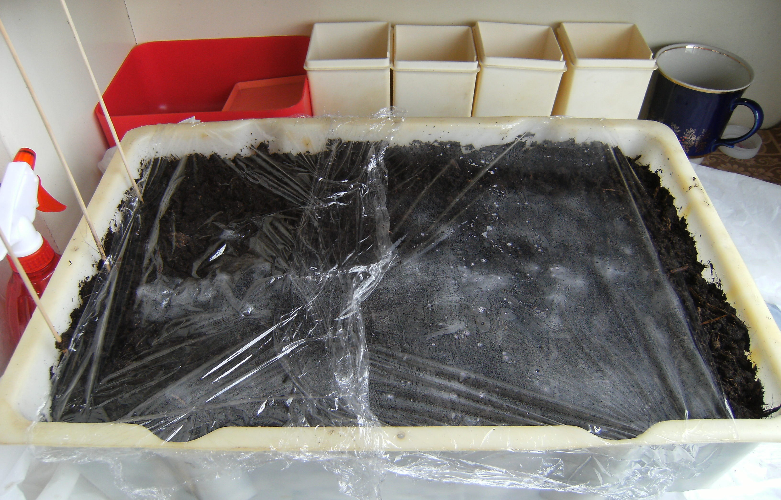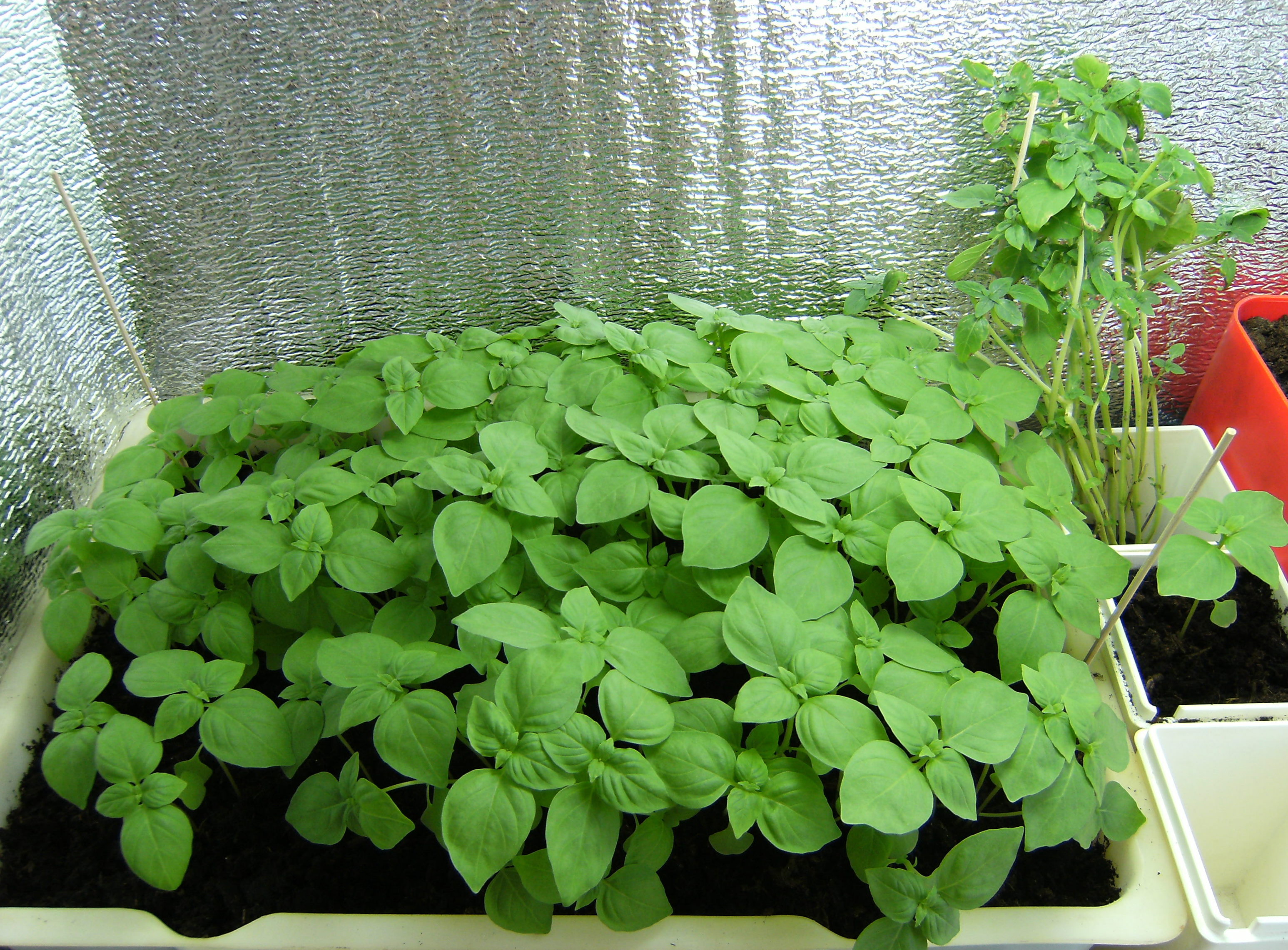 Adriano Опубликовано 8 августа, 2011 Автор Жалоба Поделиться Опубликовано 8 августа, 2011 Начну. Был куплен грунт для комнатных растений "Florio", был у меня большой пластиковый ящик, который и послужил мне в качестве горшка для высадки. В магазине купил семена базилика, сорт Mr. Burns, производство Нидерланды. Ящик с грунтом был поставлен на балкон, грунт был обильно полит отстоянной водичкой, потом сделал три параллельные канавки глубиной около 5 миллиметров и не долго думая, все семена из пакетика я равномерно просеял по этим трем канавкам, сверху осторожно присыпал грунтом и опрыскал водичкой из пульвика. Ящик сверху накрыл пищевой пленкой и сделал по бокам доступ воздуха. И оставил в покое. Цитата Ссылка на комментарий Поделиться на другие сайты Поделиться