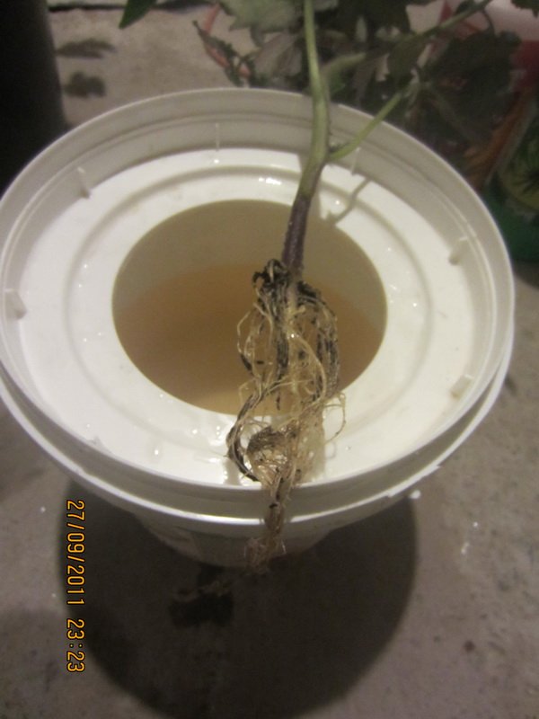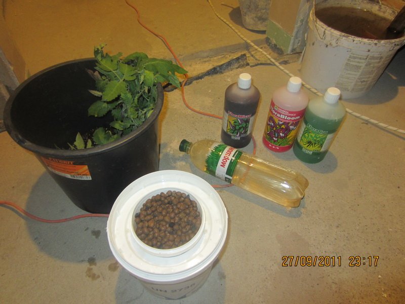 Clin Опубликовано 27 сентября, 2011 Автор Жалоба Поделиться Опубликовано 27 сентября, 2011 пРИВЕТ С ОГОРОДИКА . Помидорки все зацвели это ЧЕРРИ, =это самый клевый... . некоторые пересадил в вазоны по больше ( с 2.5 л - в 5-6л.) получилось без проблем . сей час думаю оборвать первые цветы, дабы увеличить соцветия , сечас их стандартно по 5 - 6 шт. А вот что позаимствовал, так пасивку - гидро у Бро LEZVIE81 и ему респект. И у меня по случаю осталось ведерко и не одно, после ремонта, от затирки для плитки ну как для этого дела прям просверлил дырки и вставил шнур как учил БРО LEZVIE81, правда мой шнур -это 4 шт D- 10 -9 мм на горшок (верхний ) 400-450ил в котором керамзит 5-15мм , а также решил зарядить установку GHE серией B/G/M 1.8/1.2/0.7 на 1.5л воды . В нее поставил томатик, для начала промыл корни который не знаю (их было 3 и они просто в Бокс не входили) выбрал одного из 3-х какого не знаю но бутоны у него были, я их снял (4 шт.) поставил его ауратно в керамзит и надеюсь увидеть улучшения уже скоро. Кто посещает , пишите и поправляйте... за это только + Цитата Ссылка на комментарий Поделиться на другие сайты Поделиться