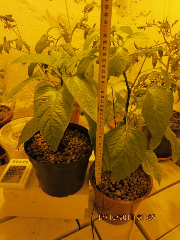 Clin Опубликовано 7 октября, 2011 Автор Жалоба Поделиться Опубликовано 7 октября, 2011 Привет. Ссссссегодня напишу за пару прошлых дней: -03,10 полил всех раствором 0,4/0,4/0,04 ---- GHE Flora и опрыскал сулфатом магния(аптечный в порошке) 0,6 гр/1л воды. -04,10 полил всех чистой водой, каждому по мере потребности, определял по весу горшка и с помощью херня китайская но примерно именно в поливе помагает... -05,10 пустила корешок семка томата Толстой F1 которую поместил в вату и присыпал вкрмикулитом все это пропитал раствором GHE Flora 0,25/0,25/0,25 на 1 литр воды, все это накрыл прозрачным полителеном. -06,10 перевел бокс на 12/12 , так как все томатики зацвели и на одном перчике горьком тоже уже есть бутоны - пускай догоняет томатики. П.С. хуже всего ведут томатики, вянут и бледнеют, которые нужно формировать в один стебель, я этого не делал, может из-за этого? и может кто-то читает мой реп..??? Ау-у-у-у!!! Цитата Ссылка на комментарий Поделиться на другие сайты Поделиться