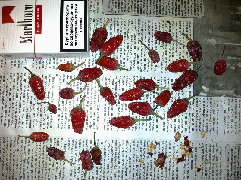 Clin Опубликовано 11 января, 2012 Автор Жалоба Поделиться Опубликовано 11 января, 2012 Привет нам уже пошел пятый месяц жизни, примерно 130 дней и перцы готовы - слева Укр.горький (один уже у папика завесил 14 грамм ) , справа Фехер. думал вчера снять, но вспомнил что кормил компотом дней 6 назад и поэтому решил пролить обильно водичкой и дать пару дней постоять. Вот и Халапеньо , в этот раз пущу в перцемолку , а вследующий урожай попробую замариновать.... бонус: - в ресторане увидел такой декор (тарелка или блюдо или пепельница большая) , хотя ресторан полностью оформлен в стиле "Советское село". Может я чето не знаю со своей не так далекой истории???? Общался с админом ресторана, а она не в какую выменять на более ценный декор в их стиле, может тоже что-то ей нравиться в этой тарелке. П.С. --- не хотят менять - прейдеться спиз..ить. . Больно в душу она мне запала. Цитата Ссылка на комментарий Поделиться на другие сайты Поделиться