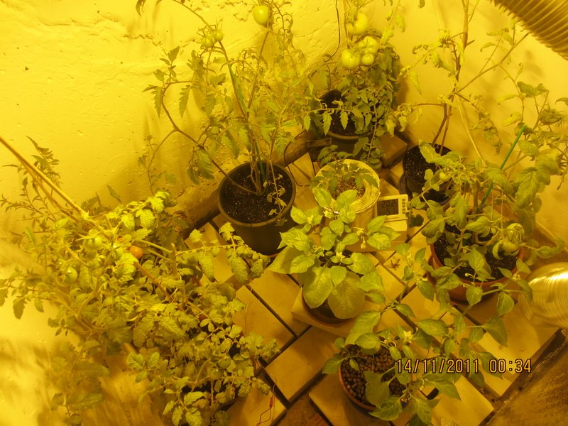 Clin Опубликовано 15 ноября, 2011 Автор Жалоба Поделиться Опубликовано 15 ноября, 2011 Привет. Вчера достал из бокса все томатики и перцы, провел уборочку в боксе, поставил два кулера на обдув вместо бытового вентилятора, собрал весь керамзит с томатиков, спасибо Бро LEZVIE81, очень много полезного подсказал, а так, очень не много инфы на сайте по томатам и перцам. урожай томатиков общим количеством не радует , но для первого опыта, я получил много хорошей и полезной инфы, жду не дождусь Аут. Раньше даже не втыкал у бабушки на огороде в эти культуры, а теперь ну просто тащусь. Про перцы не скажу пока ни чего плохого, растут, есть конечно и траблы по питанию, но не такие ужасные как у томатиков, думаю что все поправиться. Украинский Горький 73 дня , - за все время потерял один бутон, и Фехер 73 дня , - отвалилось три бутона мрачное фото, мне неприятно. Также пасивке поменял новый раствор, дал ей 3-ю - последнюю неделю веги 07/07/07(G/M/B) GHE Flora + 0.6 сульф.магн. 25%. РН= 5.5 - 6.0. это было пимерно часов 30 назад, но как заметно разницу, его поперло. Начинает спеть томатик "Санька" . Бонус к репу. Рядом возле бокса стоит ящик , в котором засыпаны сухим речным песком красный бурячок и морковка на хранение, и вот морковка, че творит. Может кто из посоветует что с ней можно замутить под Днат 400.??? Буду благодарен..... Цитата Ссылка на комментарий Поделиться на другие сайты Поделиться