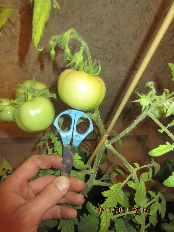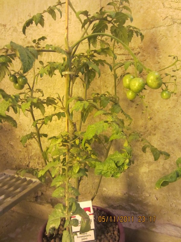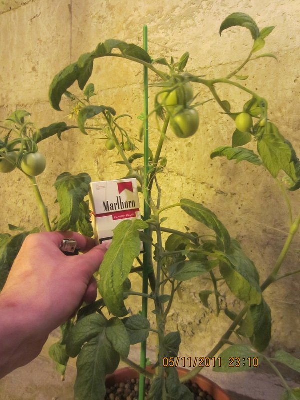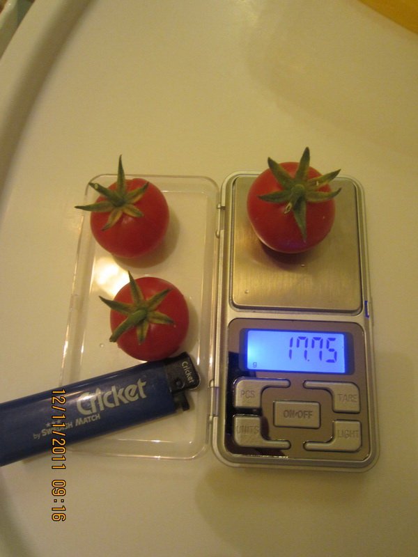 Clin Опубликовано 12 ноября, 2011 Автор Жалоба Поделиться Опубликовано 12 ноября, 2011 Всем мир. Сегодня снял первых три томатика Черри . нам 70 дней. получаеться намного раньше заявленого на упаковке семян., хотя я этот Черрик для эксперемента не пересаживал в большой вазон (он осталься в 2,5 л.) и не обрывал первое соцветие,, вот и получаем страшный дрыщ, который выжерал быстрее всех удобру из своего маленького горшка, да и созрел он, наверное потому, что плодов всего 5. Короче, так растить, не нужно. Пока предварительный вывод таков: - горшки нужны по литров 10 (томатик Санька в 9,5 л. ведре лучше всех выглядит), компот по рекомендованой на этикетке для земли от GHE Flora явно маловатат, а конкретно NPK для томатов так и не выяснил, кто знает?. Я может и оставил бы повисеть их на кустике, да один Черрик - треснул, думаю что влажность провтыкал, сегодня у них в конце дня, "перед закатом" было 38%.??? Как ВЫ думаете БРАЗЫ???? БроLEZVIE81 зачем керамзит ?????? ну без него страшно верхний слой земли пересыхает, а так все норм и я их не сильно заливаю.помидоры боятся влаги ... панически . не опрыскивать !!! я опрыскивал пару раз на веге , счас не юзаю пульвик. А подскажи рекомендованную влажность для томатов? у тебя все шансы проверить супер метод ! у меня места нет и возможности ..пока . попробуй сделать субстрат из фарша рыбы (купи самую дешёвую ) + земля + байкал м1 . завернив пакет(плотно , чтоб не воняло и процесс шёл быстрее) и поставь на месяц . а потом этот субстрат используй . думаю , будет жуть ! ультра урожайность . - за такой рецептик респект, обезательно замучу его при следующем цикле. А ты не можешь выложить пропорцию рыба/земля/байкал и можно ли вместо байкал использовать GHE серию или что-то другое.....МИР. Цитата Ссылка на комментарий Поделиться на другие сайты Поделиться