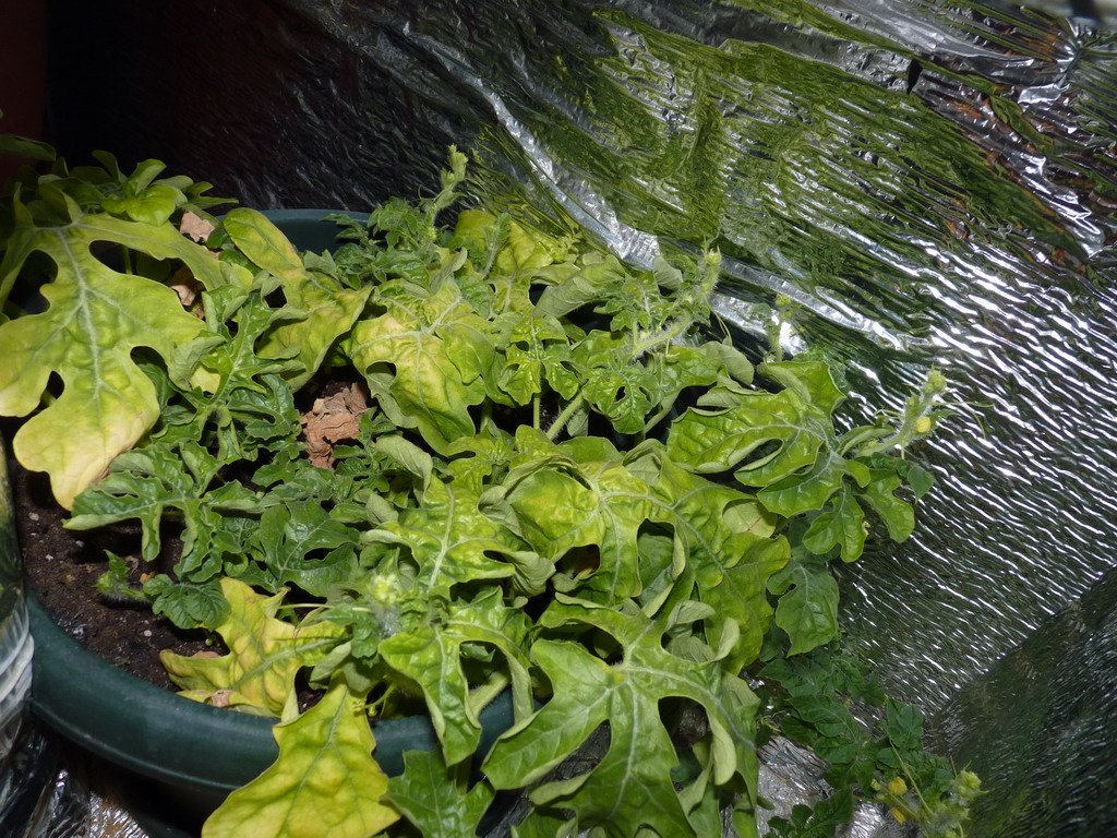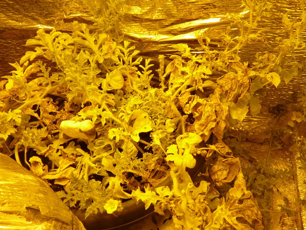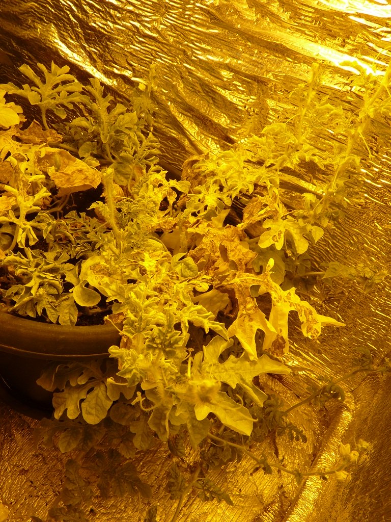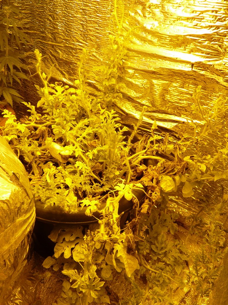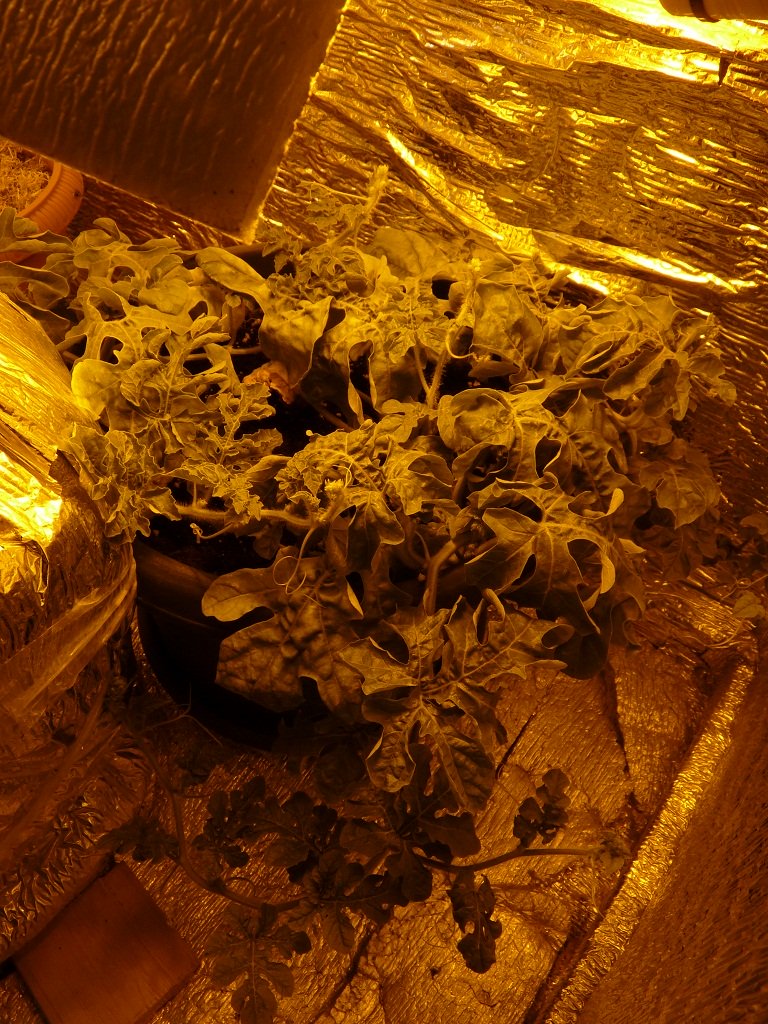 Xo66uT Опубликовано 6 января, 2012 Автор Жалоба Поделиться Опубликовано 6 января, 2012 Всех с наступившим Новым Годом и наступающим Рождеством!!! И так в наших рядах пока временные потери, салат был опрокинут с высоты 1 м на пол, смёлся и был выкинут на помойку((( Другие подопечные очень даже молодцы, растут, тянутся. Клубника ооочень медленно растет. Редис бодренький. Общий вид маленькой грядки под ЭСЛ 105 Вт 6500К + 2х55 Вт 2700К Арбузы, не знаю пока сколько останется, думаю оставить 1-2 бахчи. Томаты, очень приятно поднимаются, мммм, скоро помидорчики поем)))) Думаю устроить им немного LST лишь бы стафа хватила до харвеста моей грядки))))) 1 Цитата Ссылка на комментарий Поделиться на другие сайты Поделиться