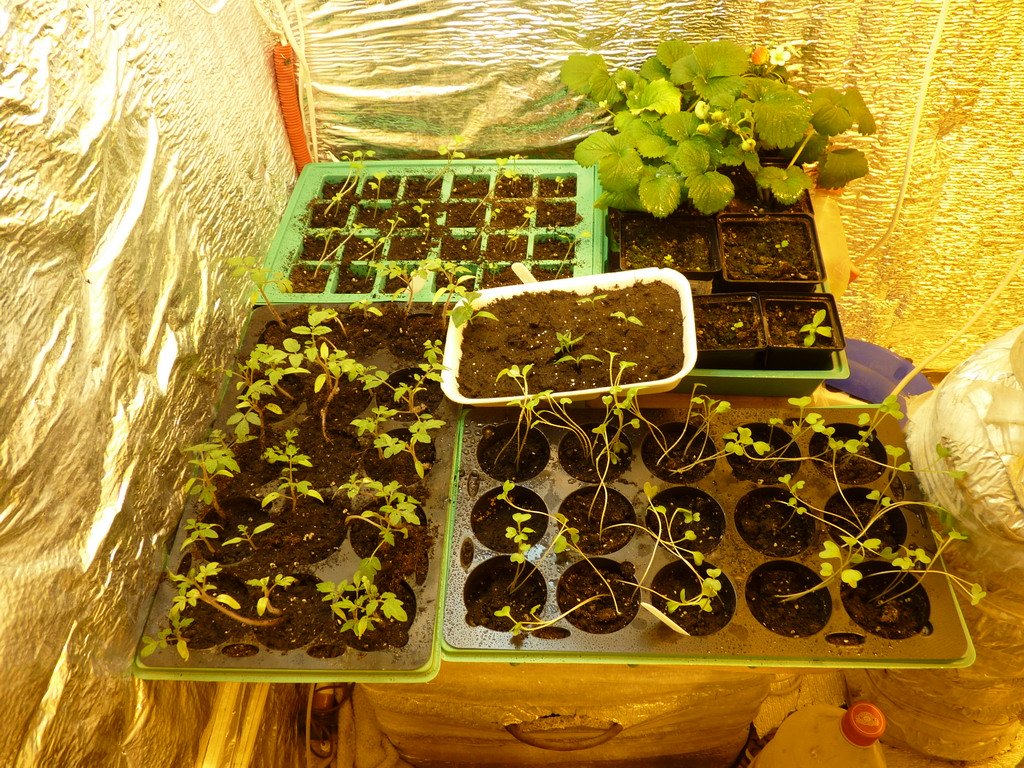 Xo66uT Опубликовано 29 декабря, 2011 Жалоба Поделиться Опубликовано 29 декабря, 2011 Всем привет, мир вам Собрав два харвеста я понял что стафа хватит надолго , решил провести эксперимент. Расти все будет под разным светом, для клубники, редиса и салата светит ЭСЛ 105 Вт 6500К, и 2хЭСЛ 55 Вт 2700К. Для томатов и арбузов светит ДнАТ 400 Вт Вентиляция, вдув пассивный, выдув 200 м3, температура 290С, влажность 30-35%. Режим дня/ночи 17/7. Мои подопечные: Редис 5 дней веги Томаты 2 дня веги Арбузы 2 дня веги Клубника и салат взошли только, только, фото будут позже. Про бокс более подробно в моем репорте. Всем спасибо. 2 Цитата Ссылка на комментарий Поделиться на другие сайты Поделиться