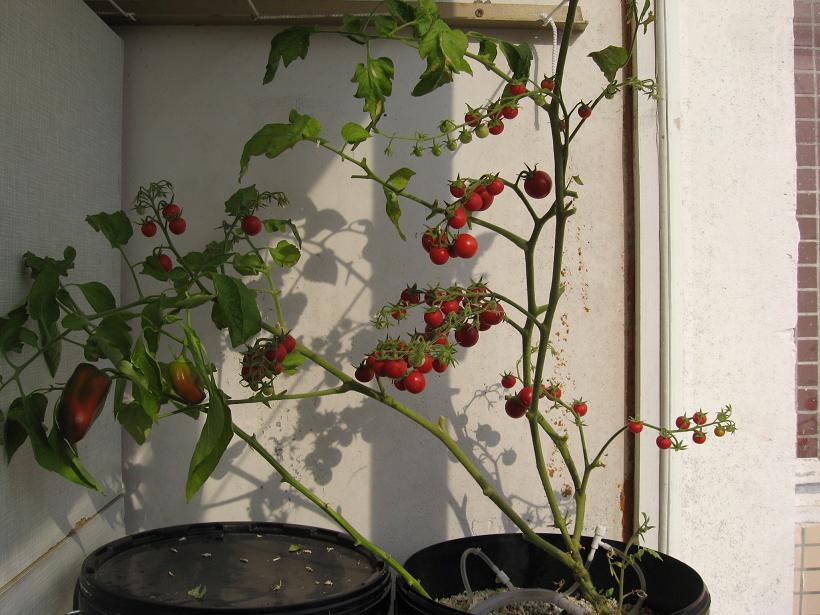 Мама Тереза Опубликовано 17 января, 2012 Жалоба Поделиться Опубликовано 17 января, 2012 Здравствуйте уважаемые гроверы! Хочу показать вам свой опыт выращивания растений на ионитопонных удобрениях Lewatit HD50. Удобрения эти интересны тем, что один раз засыпала их в бак или добавила в субстрат - а дальше можно просто поливать водопроводной водой, не заморачиваясь на уровень рН, передозы, недодозы и прочую чепушню. В общем была собрана из старых аквапотов установка с капельным поливом на подобие Water Farm, в качестве субстрата использовался чистый агроперлит, который был смешан с 250 мл леватита. Сразу хочу сказать, что капля использовалась первые пару недель, дальше на это было забито и вода доливалась просто сверху прямо из крана, без отстаивания и прочей светотени. Освещение - солнышко через довольно-таки грязные стёкла. Сначала растения очень тормозили в росте и показывали недостаток Азота, но постепенно с наращиванием корневой системы очень быстро пошли в рост. Листва сочно-зеленая, никаких проблем не замечалось. Помидорка активно растёт, начала цвести. Удобрений никаких не вносилось, за 2 недели долила 4 литра воды из-под крана. Раза 3 включала установку для промачивания перлита, потому что для правильной работы ионитопонных удобрений требуется постоянная влажность. перцы растут не так активно, как томат, но они посажены больше для компании, чтобы Черри не скучала на балконе. На помидорке появилась первая завязь, перец только набирает бутоны. С последней фотосессии ничего не делалось. Технология выращивания на ионитопонике очень нравится крайней простотой и хорошим ростом без признаков передоза или недостатка удобрений. Цвет насыщенный, растения упругие, здоровые. Первая помидорка начала краснеть: Дальше просто фото, поскольку ничего не делалось, просто доливалась вода: В общем результатом я довольна, учитывая практически нулевые трудозатраты. Спасибо всем, кто прочитал мой репорт. Желаю всем хорошим людям мира и процветания! Зе енд. 2 Цитата Ссылка на комментарий Поделиться на другие сайты Поделиться
