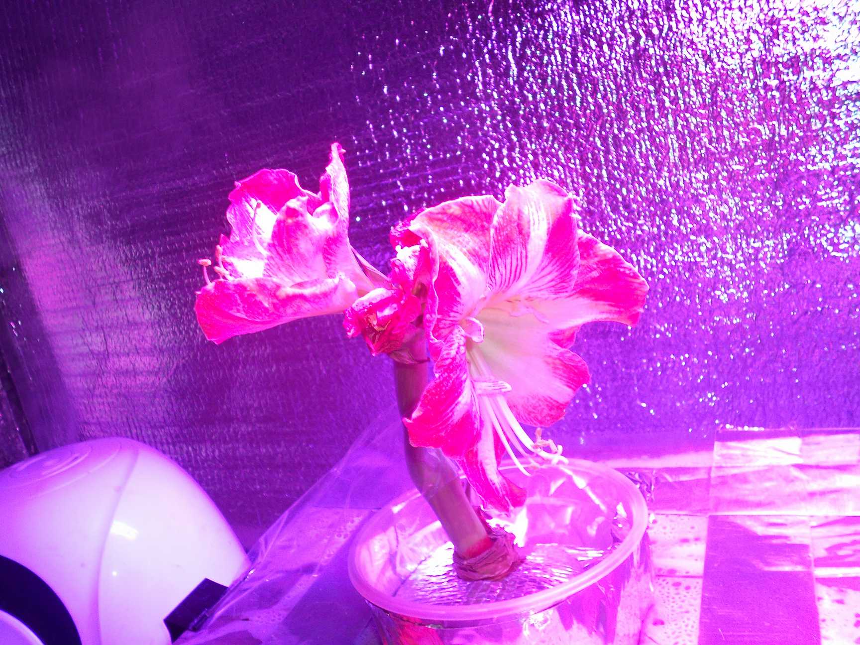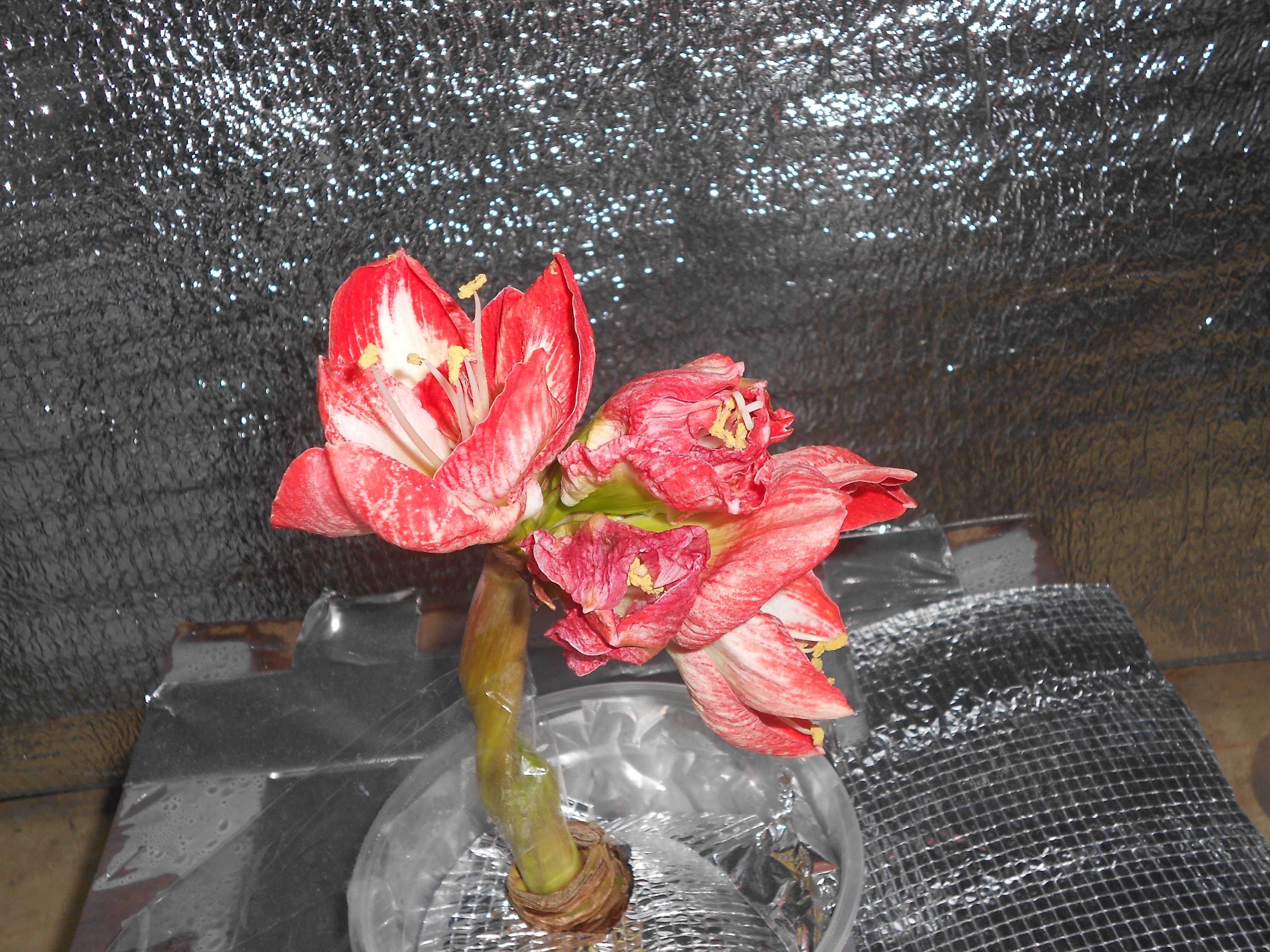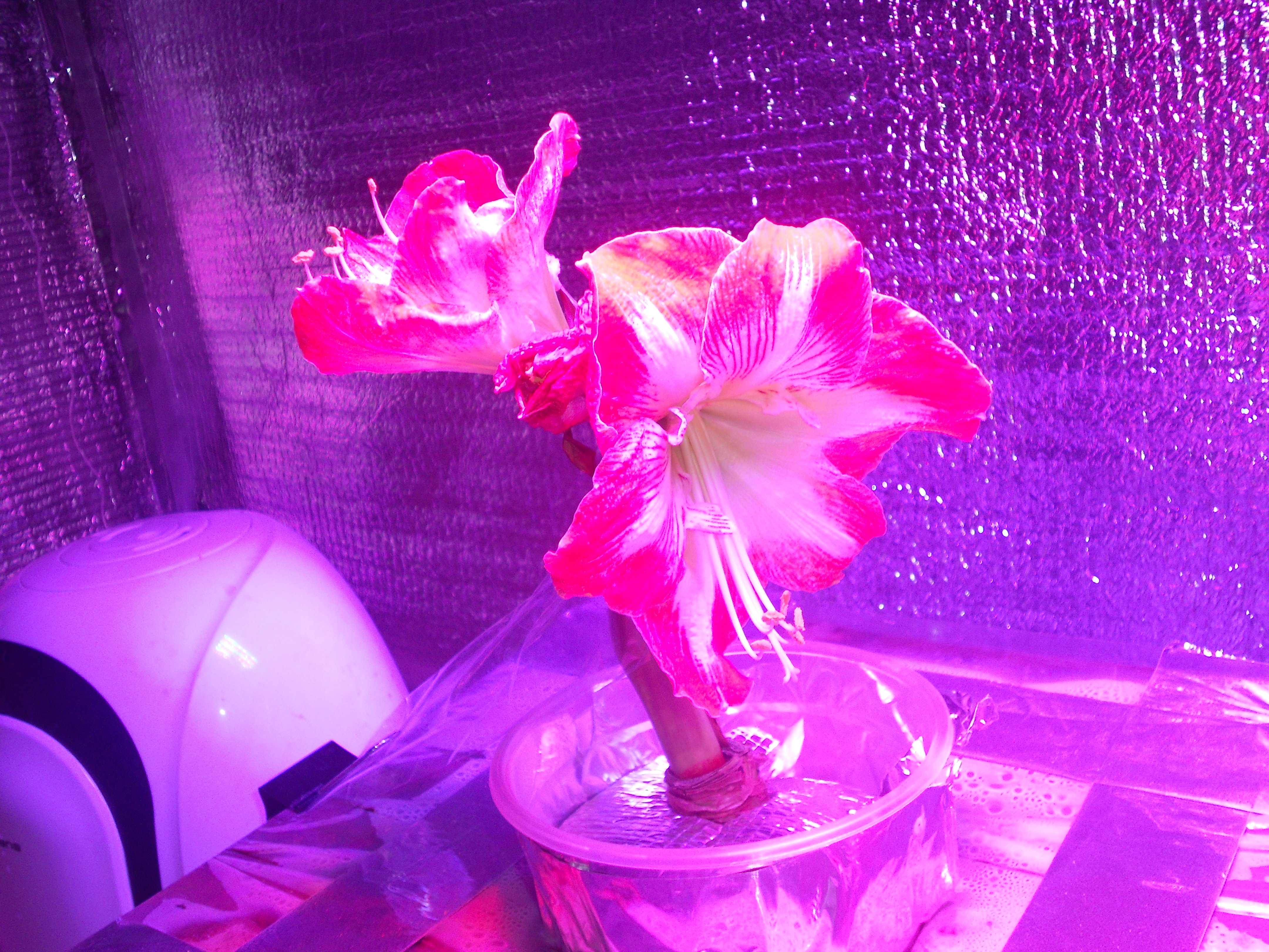 sfoddler Опубликовано 11 апреля, 2012 Автор Жалоба Поделиться Опубликовано 11 апреля, 2012 Амариллис 17 дней Свет: 16/8 Раствор: 70%, ТДС - 950 ппм, пш - 5.8. Как начали вянуть бутоны, начала расти концентрация в растворе, значит меньше ест. Читал, что у амариллиса после цветения наступает период покоя, когда его надо ставить в под небольшое освещение на 1-2 месяца. Как отвалятся все бутоны, попробую перенести его на окно. Листьев так и не видно, хз, чем он есть собирается. Земляника 5 дней Свет: 16/8 Раствор: 30%, ТДС - 650 ппм, пш - 6.0. Земляника растет нормально, правда немного растет и концентрация раствора. Всем Мир Цитата Ссылка на комментарий Поделиться на другие сайты Поделиться