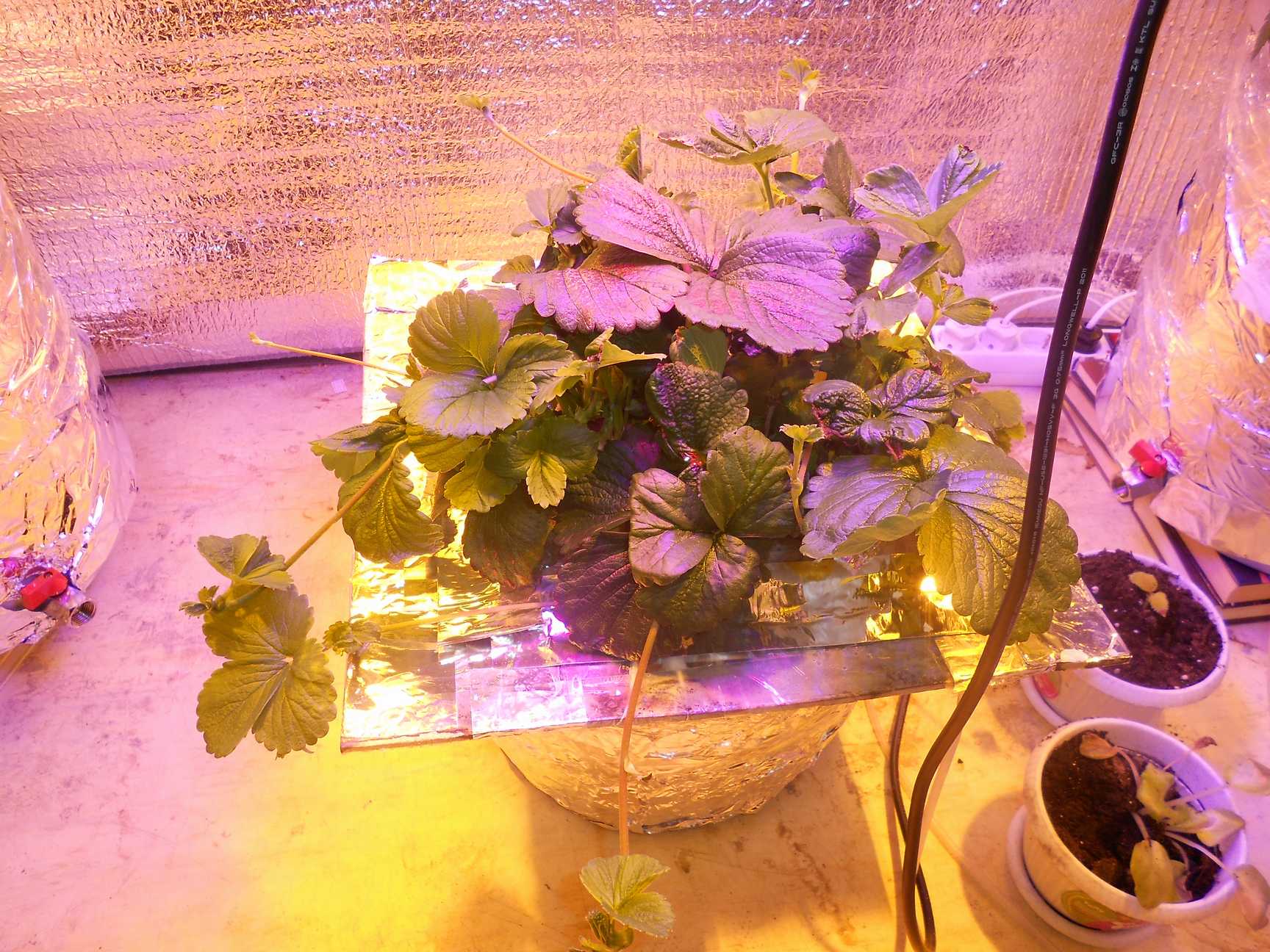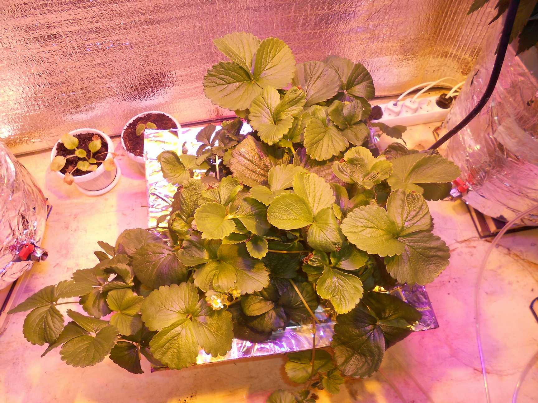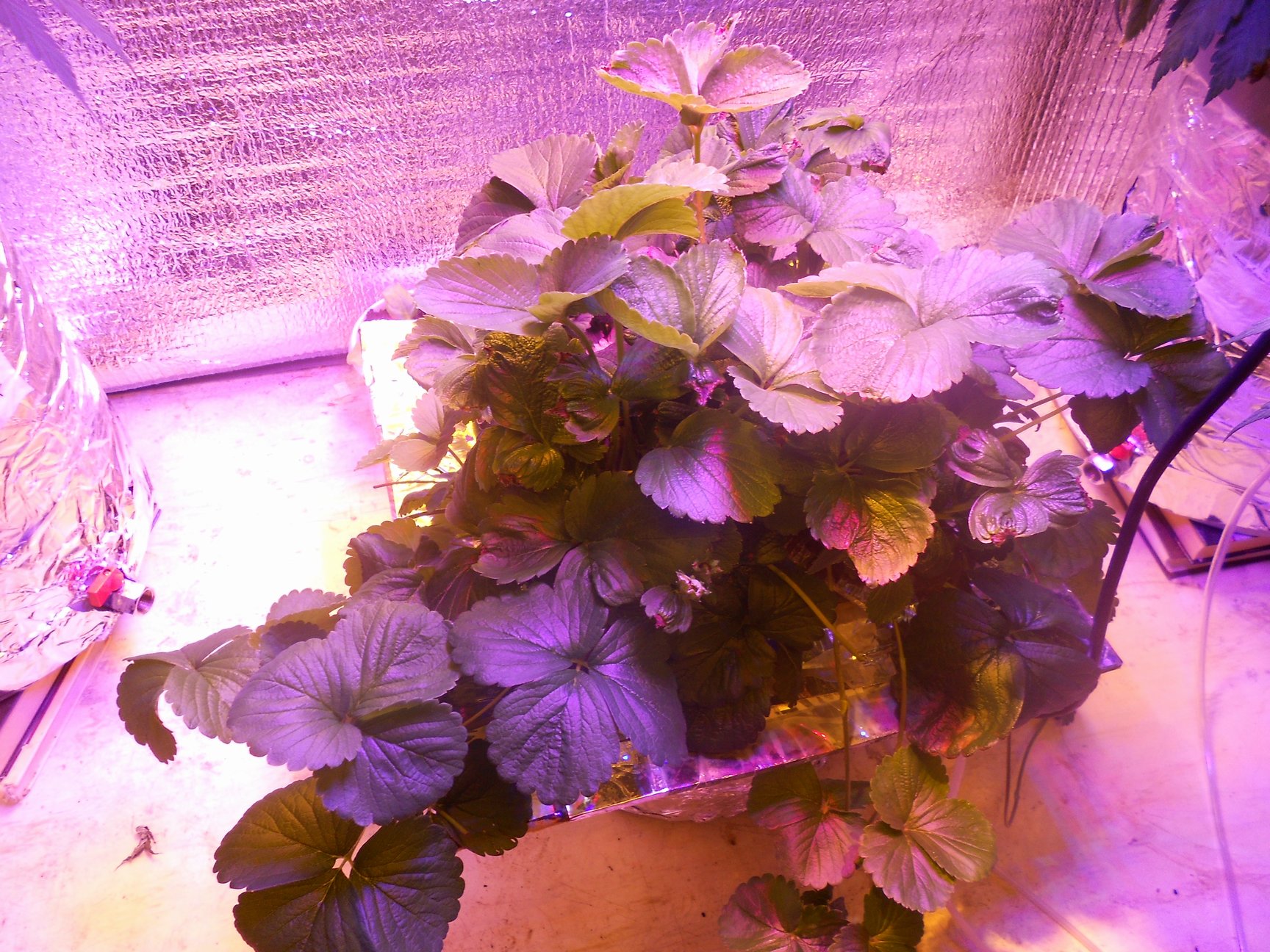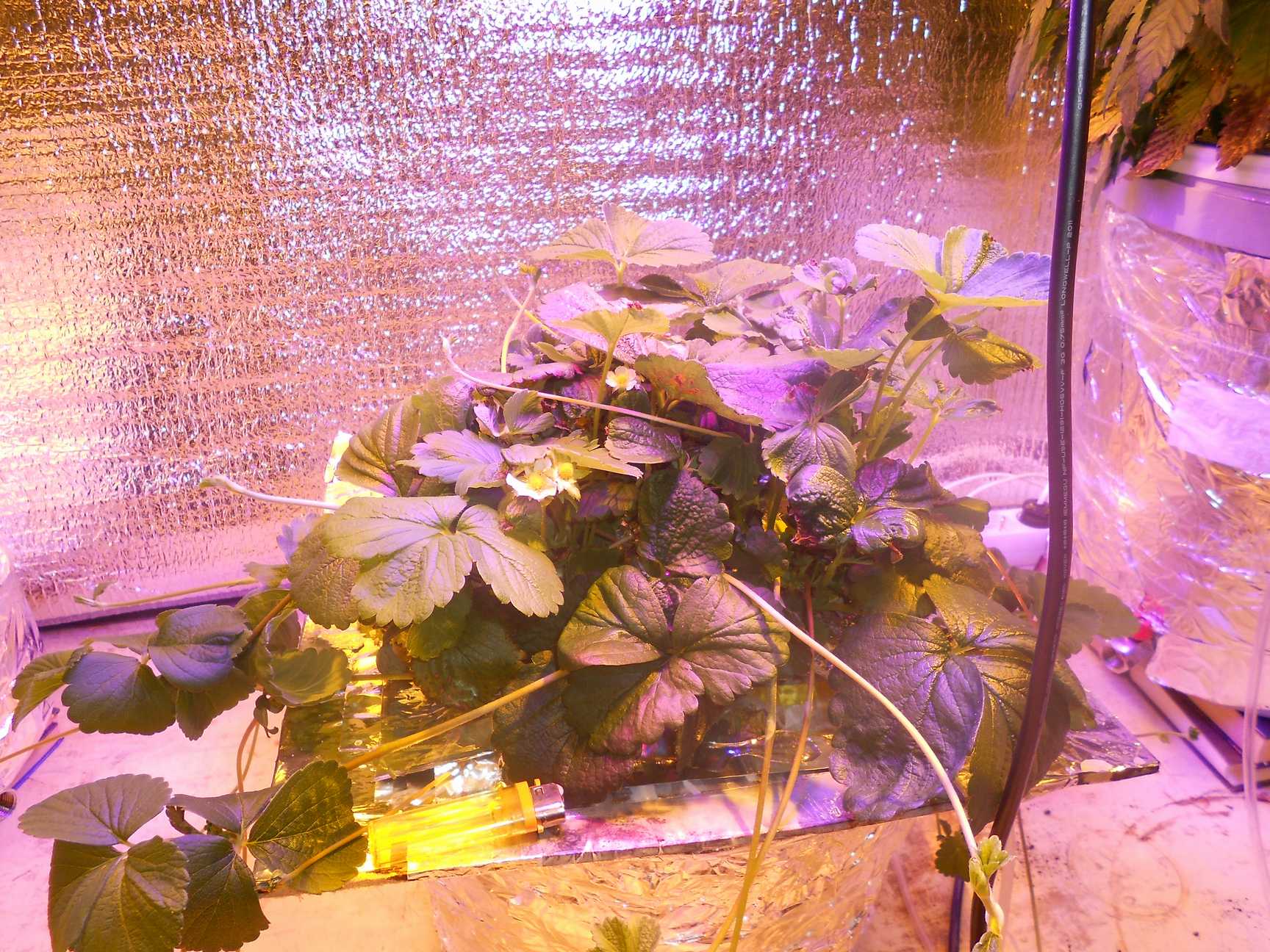 sfoddler Опубликовано 13 июня, 2012 Автор Жалоба Поделиться Опубликовано 13 июня, 2012 Земляника 68 дней Свет: 18/6. LED 180. 25к Люмен. Температура/влажность: День: 23 С, Ночь: 20 С/60% Раствор: ТДС - 870 ппм, пш - 6,2. Наконец земляника переехала жить в собственную комнату, отдал ей старый маленький бокс. Свет сделал 18/6. Оторвал все усы, а то они уже вымахали огромные, теперь буду отрывать их по мре появления, глядишь цвести и плодоносить лучше кустики будут. А еще я убрал один из пяти кустиков, ибо он помер . Не видно было, а как полез усы обрезать, то заметил, что он совсем сухой стоит. Вот такие пироги) Всем Мир Цитата Ссылка на комментарий Поделиться на другие сайты Поделиться
