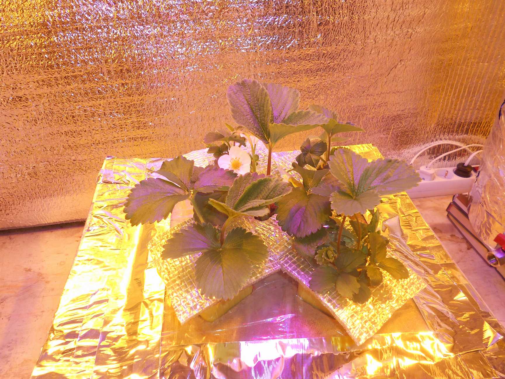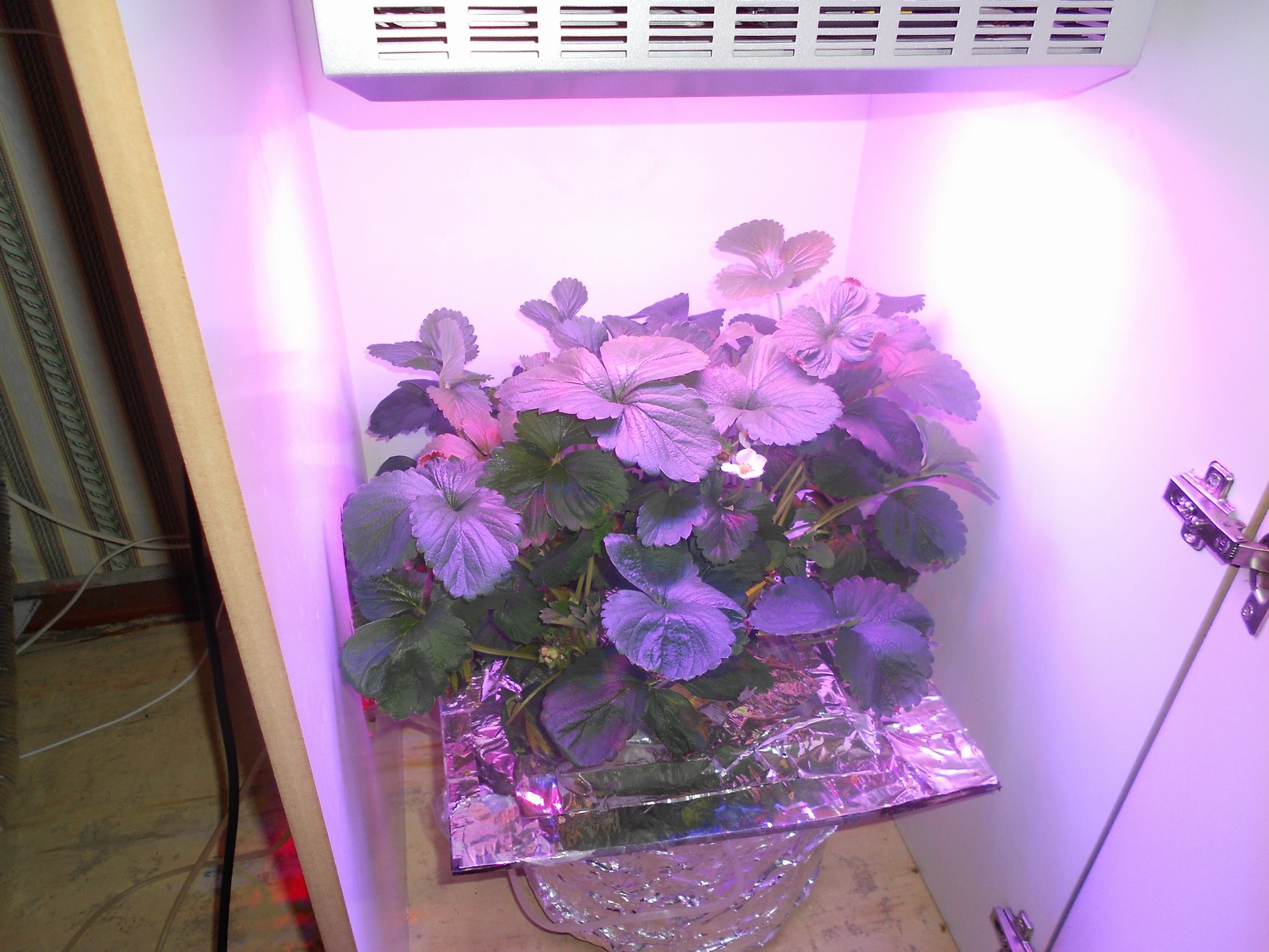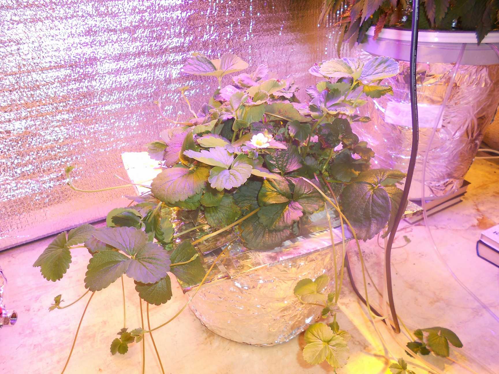 sfoddler Опубликовано 13 июня, 2012 Автор Жалоба Поделиться Опубликовано 13 июня, 2012 Земляника 68 дней Свет: 18/6. LED 180. 25к Люмен. Температура/влажность: День: 23 С, Ночь: 20 С/60% Раствор: ТДС - 870 ппм, пш - 6,2. Наконец земляника переехала жить в собственную комнату, отдал ей старый маленький бокс. Свет сделал 18/6. Оторвал все усы, а то они уже вымахали огромные, теперь буду отрывать их по мре появления, глядишь цвести и плодоносить лучше кустики будут. А еще я убрал один из пяти кустиков, ибо он помер . Не видно было, а как полез усы обрезать, то заметил, что он совсем сухой стоит. Вот такие пироги) Всем Мир Цитата Ссылка на комментарий Поделиться на другие сайты Поделиться