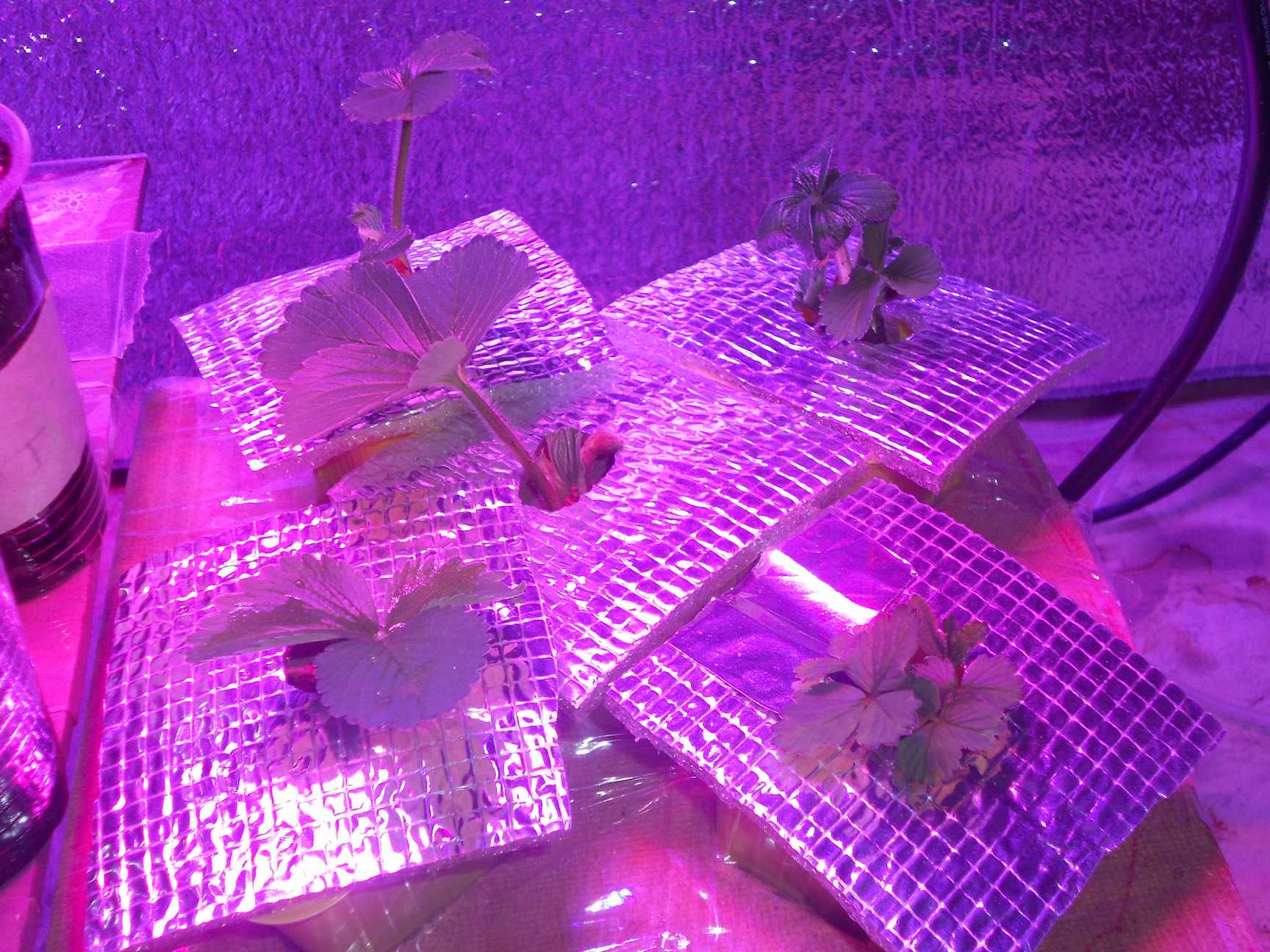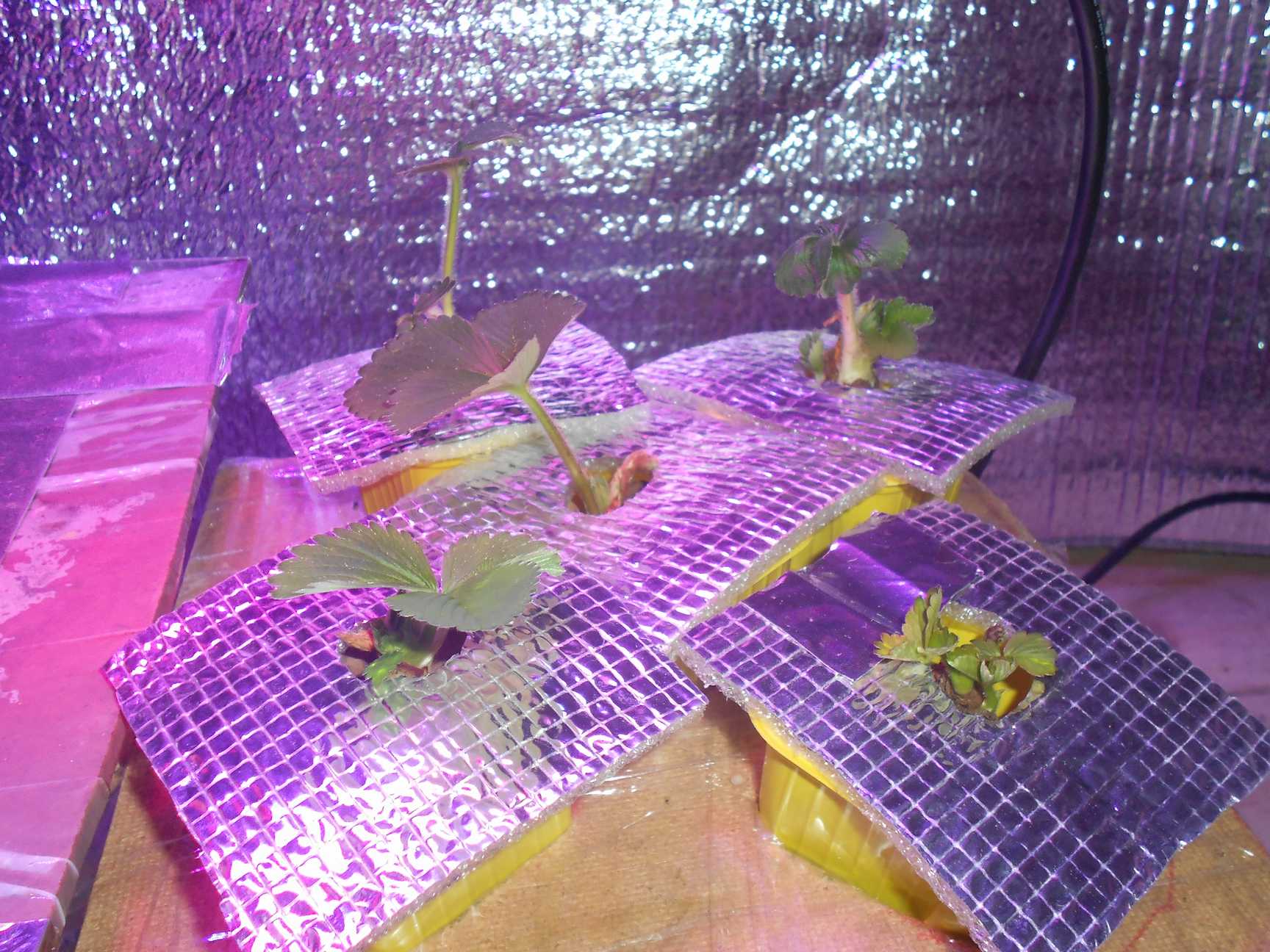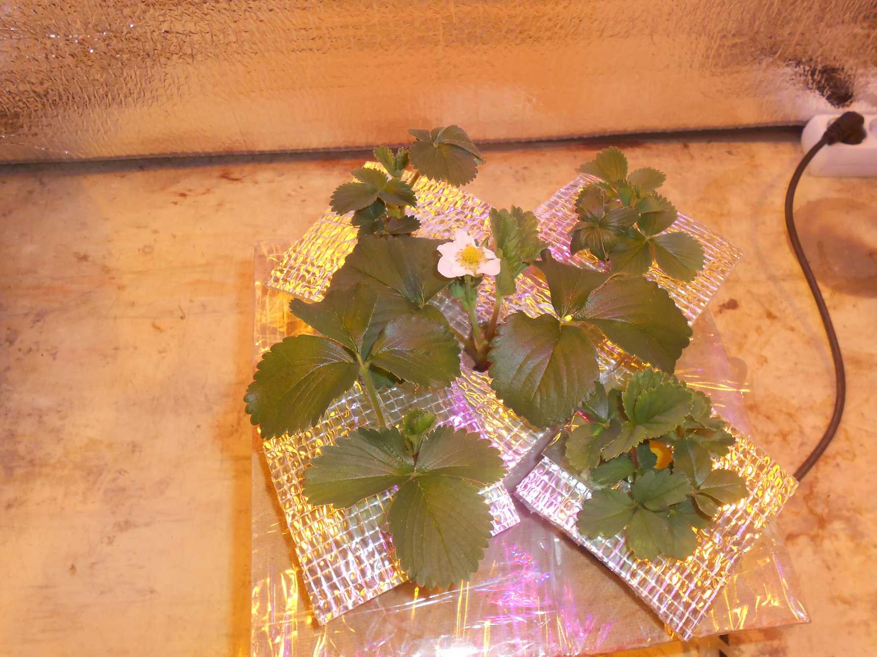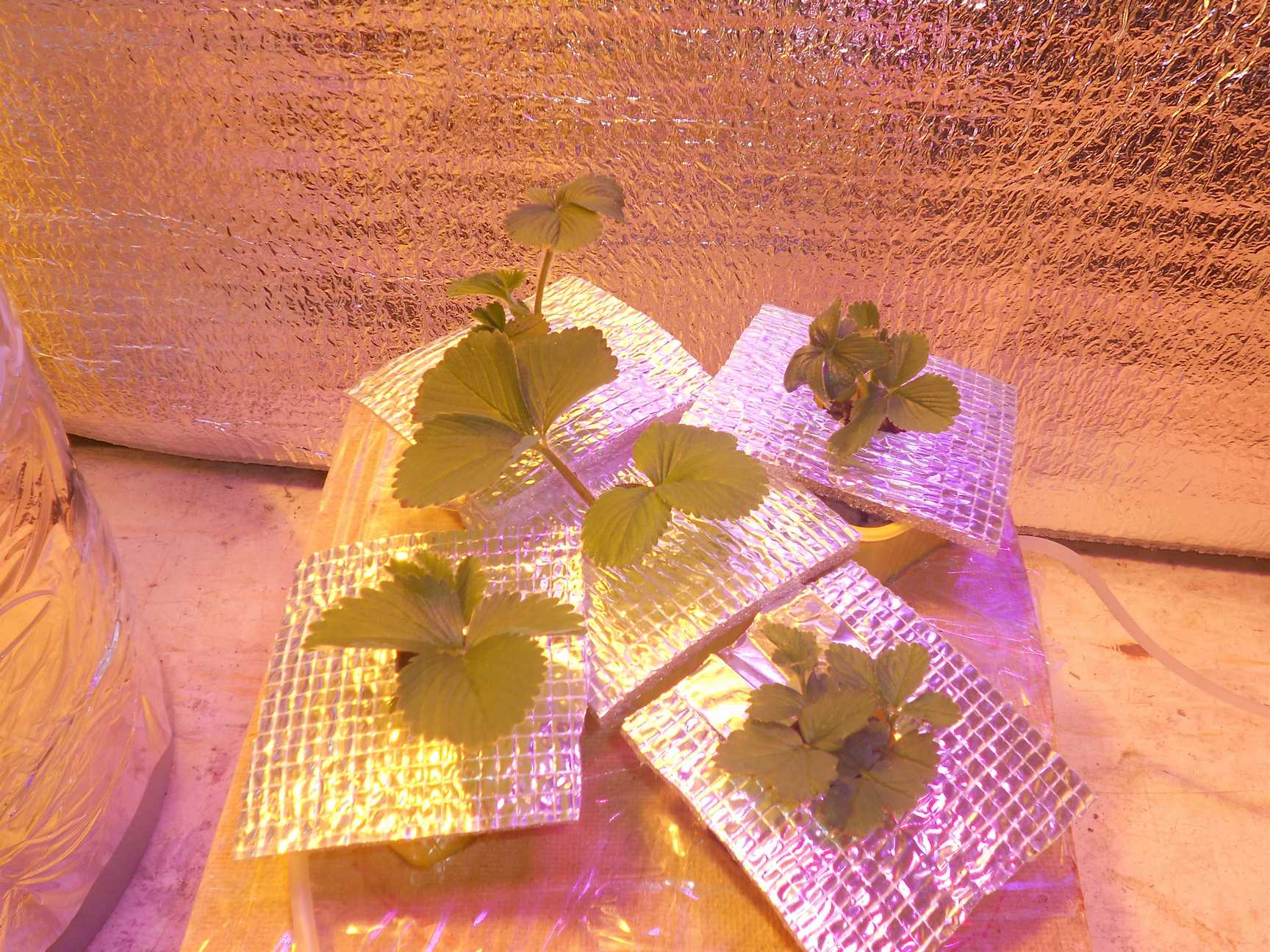 sfoddler Опубликовано 13 июня, 2012 Автор Жалоба Поделиться Опубликовано 13 июня, 2012 Земляника 68 дней Свет: 18/6. LED 180. 25к Люмен. Температура/влажность: День: 23 С, Ночь: 20 С/60% Раствор: ТДС - 870 ппм, пш - 6,2. Наконец земляника переехала жить в собственную комнату, отдал ей старый маленький бокс. Свет сделал 18/6. Оторвал все усы, а то они уже вымахали огромные, теперь буду отрывать их по мре появления, глядишь цвести и плодоносить лучше кустики будут. А еще я убрал один из пяти кустиков, ибо он помер . Не видно было, а как полез усы обрезать, то заметил, что он совсем сухой стоит. Вот такие пироги) Всем Мир Цитата Ссылка на комментарий Поделиться на другие сайты Поделиться