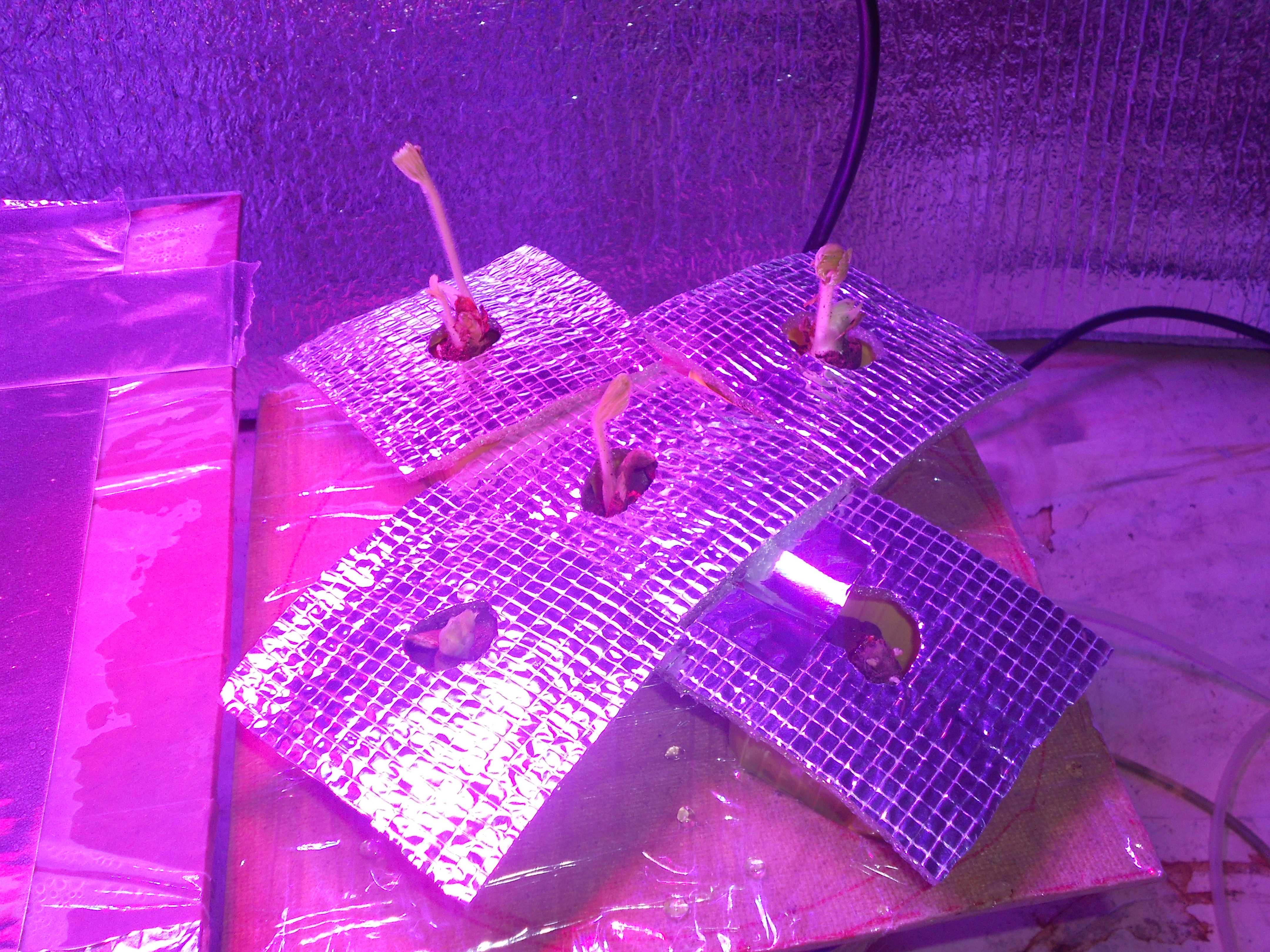 sfoddler Опубликовано 8 апреля, 2012 Жалоба Поделиться Опубликовано 8 апреля, 2012 Всем привет. В ожидании очередого цикла Марьи, решил посадить на ДВЦ цветок Амариллис и несколько кустов земляники. Цветок вижу впервые, потому без понятия. как он должен расти. Посадил его 10 дней назад. Мои удобрения: Флора микро, сульфат магния, МФК, сульфат калия, Этиссо на цвет, Greenworld на вегу. + пш-метр и солемер. Амариллис Свет(LED 180W): 16/8. Влажность: 65%. Раствор (в скобках рекомендации раствора для роз): NPK - 224/65/430(200/65/420), Ca - 152(240), Mg - 58(60), S - 78(220)+ микро. По кальцию и сере большой недобор, но я хз, откуда их брать с моими удобрениями. Земляника Взял в Оби уже пророщенные ростки ремонтантной земляники. Свет(LED 180W): 16/8. Влажность: 65%. Раствор (в скобках рекомендации раствора для земляники - вегетация): NPK - 158/65/342(150/70/350), Ca - 143(260), Mg - 96(50), S - 70(220)+ микро. Решил добавить больше магния, т.к. им сложно получить передоз, чтоб увеличить серу. Я растил до этого перец на гидре, и из-за дефицита серы бледнели и выцветали все молодые листья. Надеюсь на советы и отзывы. Всем Мир 1 Цитата Ссылка на комментарий Поделиться на другие сайты Поделиться