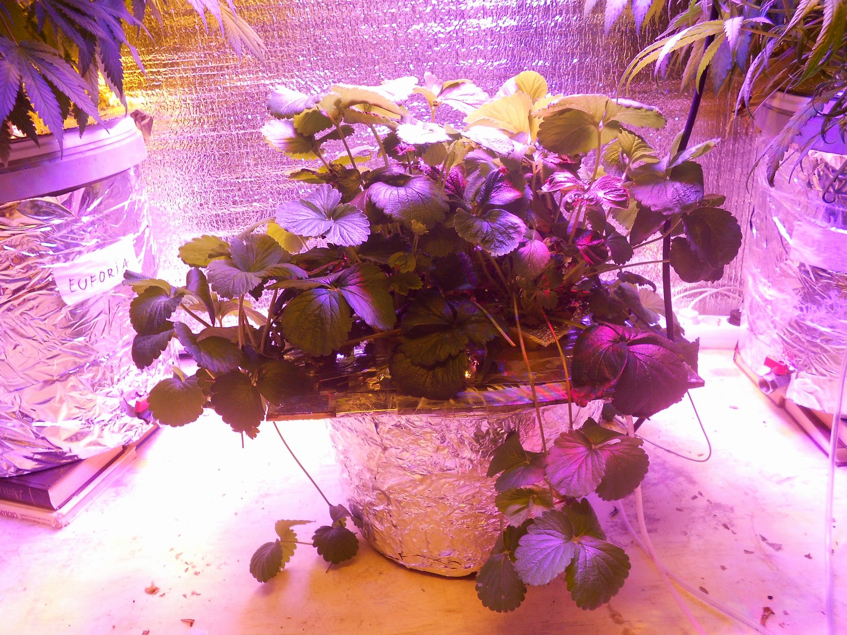 sfoddler Опубликовано 22 апреля, 2012 Автор Жалоба Поделиться Опубликовано 22 апреля, 2012 Земляника 16 дней Свет: 18/6. 2 ДНаТ 400 + LED 180 Температура/влажность: День: 32 С, Ночь: 25 С/60% Раствор: 60%, ТДС - 860 ппм, пш - 5,6. Добавил 1л раствора (50% концентрации). Ведро маленькое, даже такие маленькие кусты довольно быстро выпивают воду, да еще и испаряется немного, наверно. на фото не видно, но левый верхний тоже зацвел. Всем Мир rastmaster, система Эберта, это когда раствор сам к корням поднимается, да? Думаю, что покатит, клубника не должна много пить, корневая не большая. А вообще возьми и попробуй, это лучший выход, у меня это раз пятый, когда я землянику пытаюсь вырастить)) Удачи, бро) Цитата Ссылка на комментарий Поделиться на другие сайты Поделиться