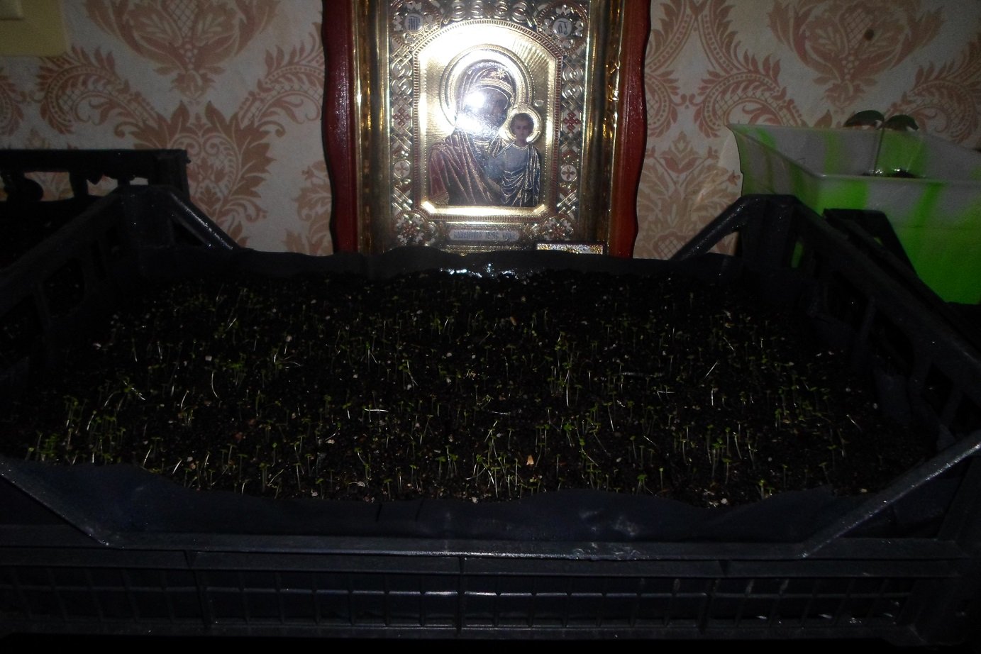 20.03 семена были перемешены в квортиру с болкона, освешение длы подсветки лампа 36 ват