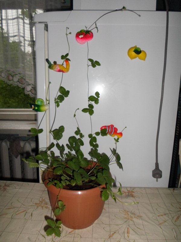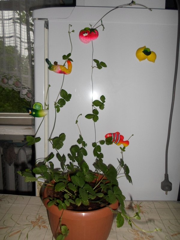 Тока сам не помню где заказывал семена, но думаю если пустить усы на сетку то получится не хуже чем в журналах про вьющеюся клубнику,