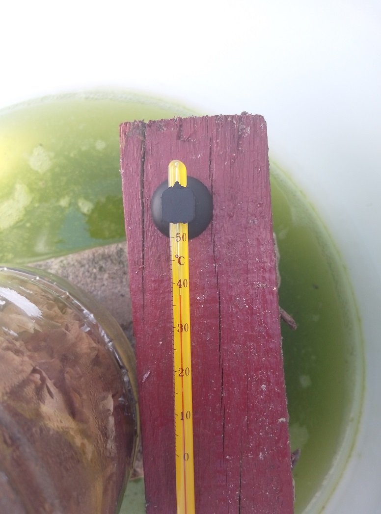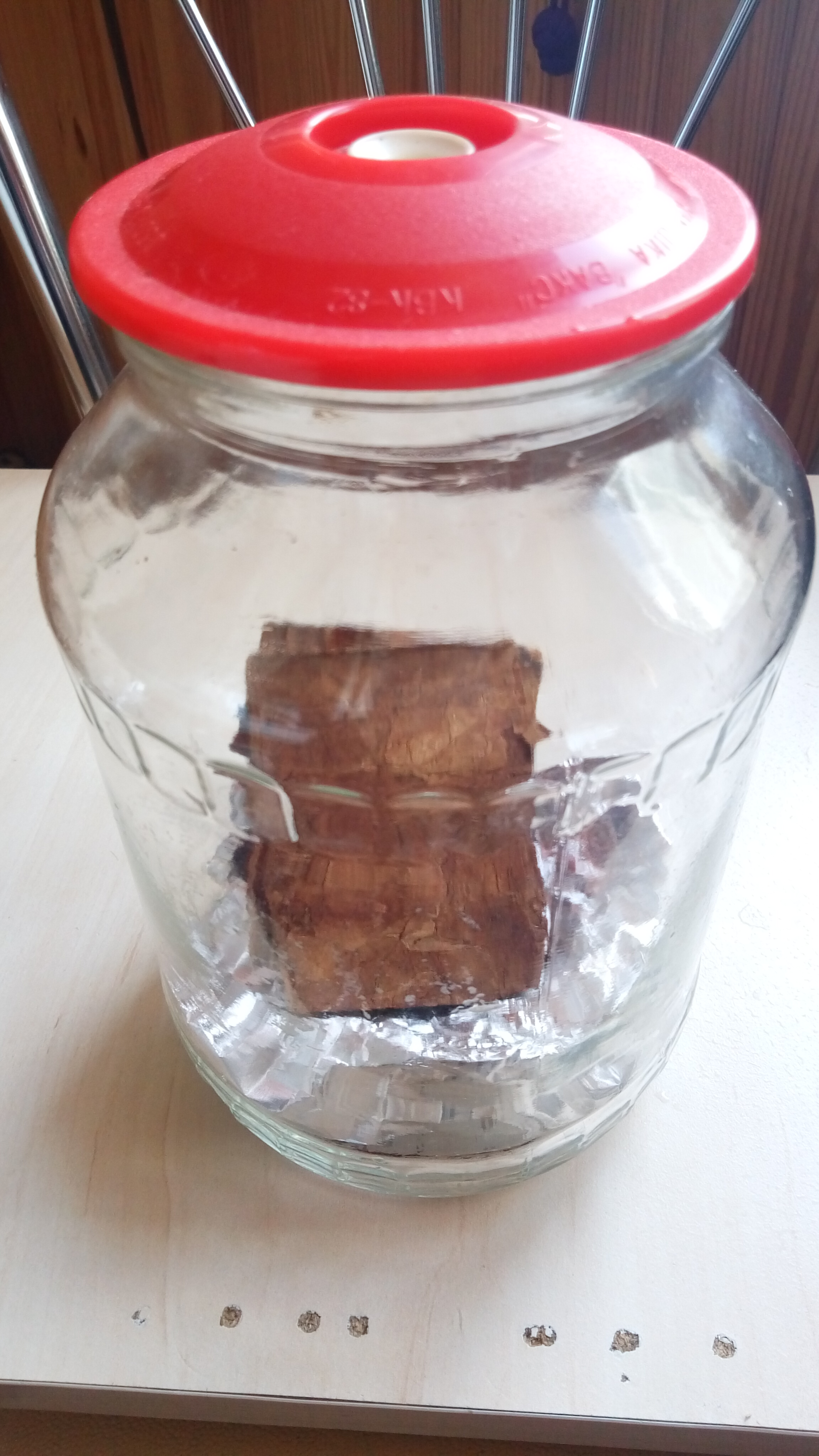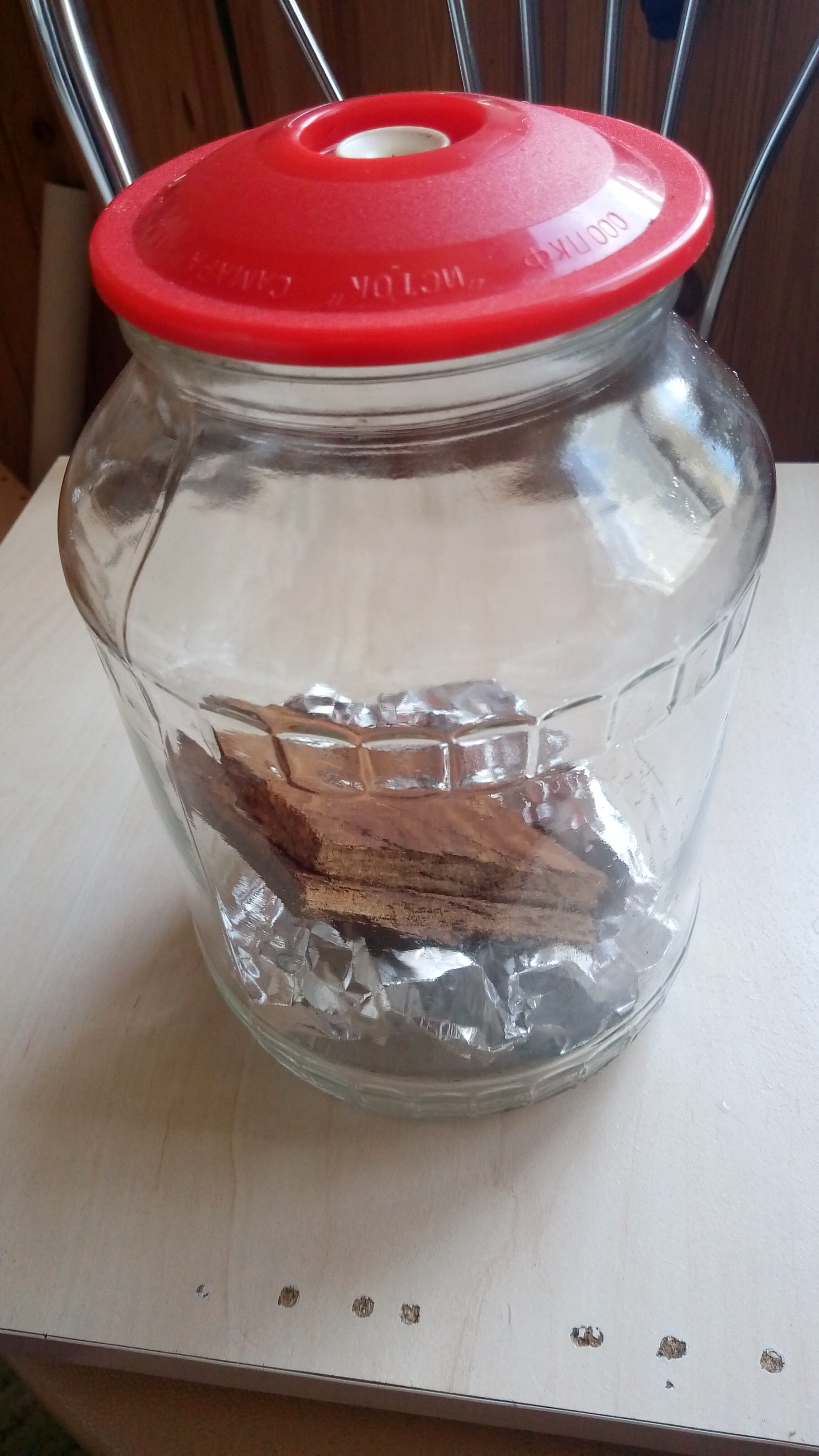 В жаркий день когда +35, внутри бочки более 50, так что ставлю ее в притененное место. Листья предварительно полностью просушил, увлажнил, убрал центральную жилку. На дне банки фольга, со стенок под нее собирается конденсат, но лист остается сухой. Этот табак в банке ферментировался 7 дней, его влажность небольшая, может 10-15%, он похрустывает, измельчается и куриться нормально. Но это не предел, попробовал и поставил дальше ферментироватся, еще недельки 2-3.
