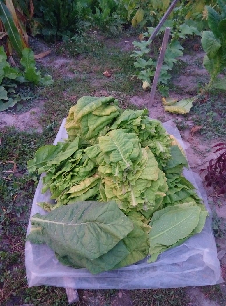 Некий очередной этап завершен. Собрал средний этаж листьев со всех кустов и отправил на сушку.