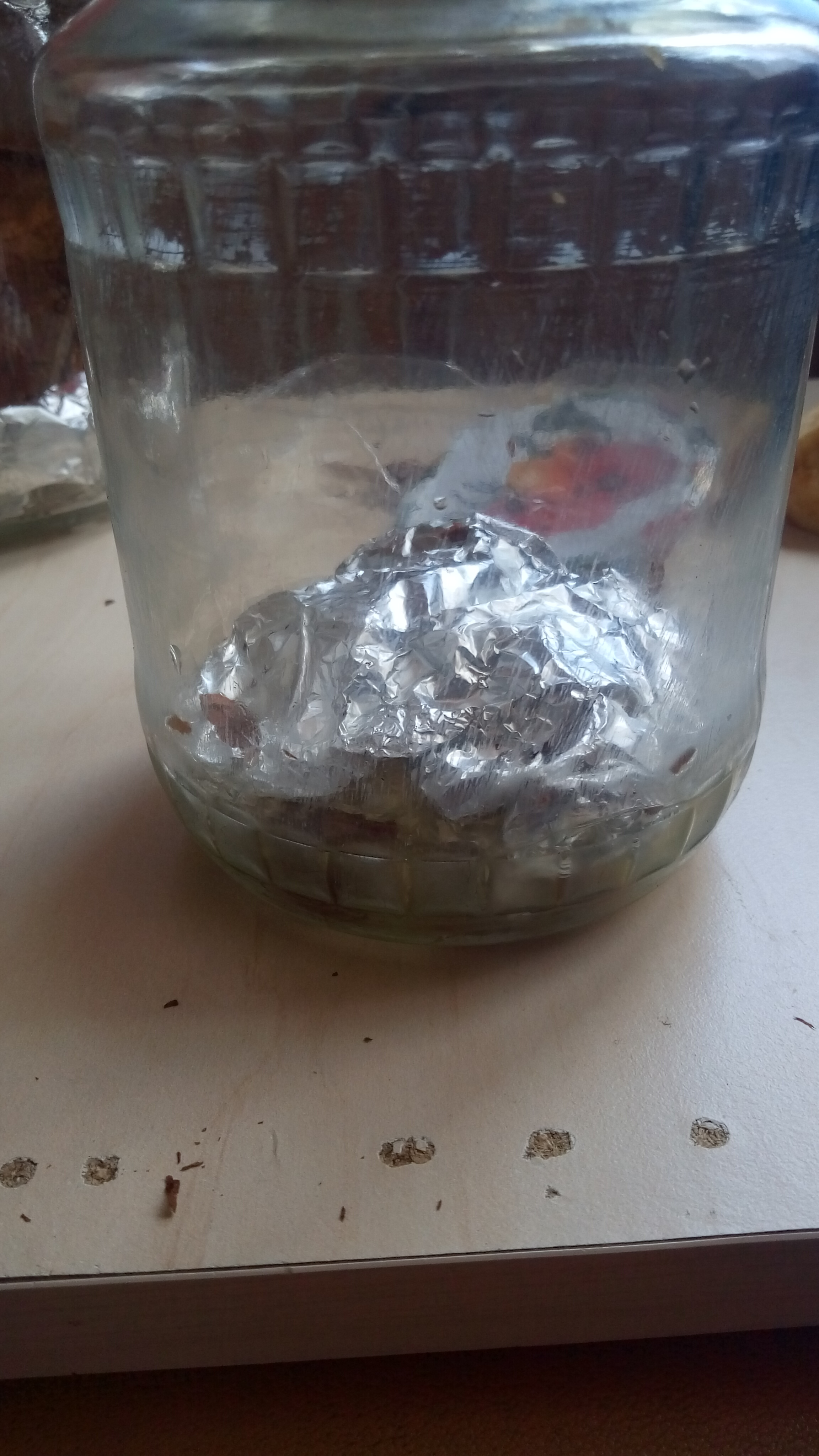 2. Берем фольгу складываем в 3-4 слоя, ложим на дно. Уровень воды ниже поверхности фольги