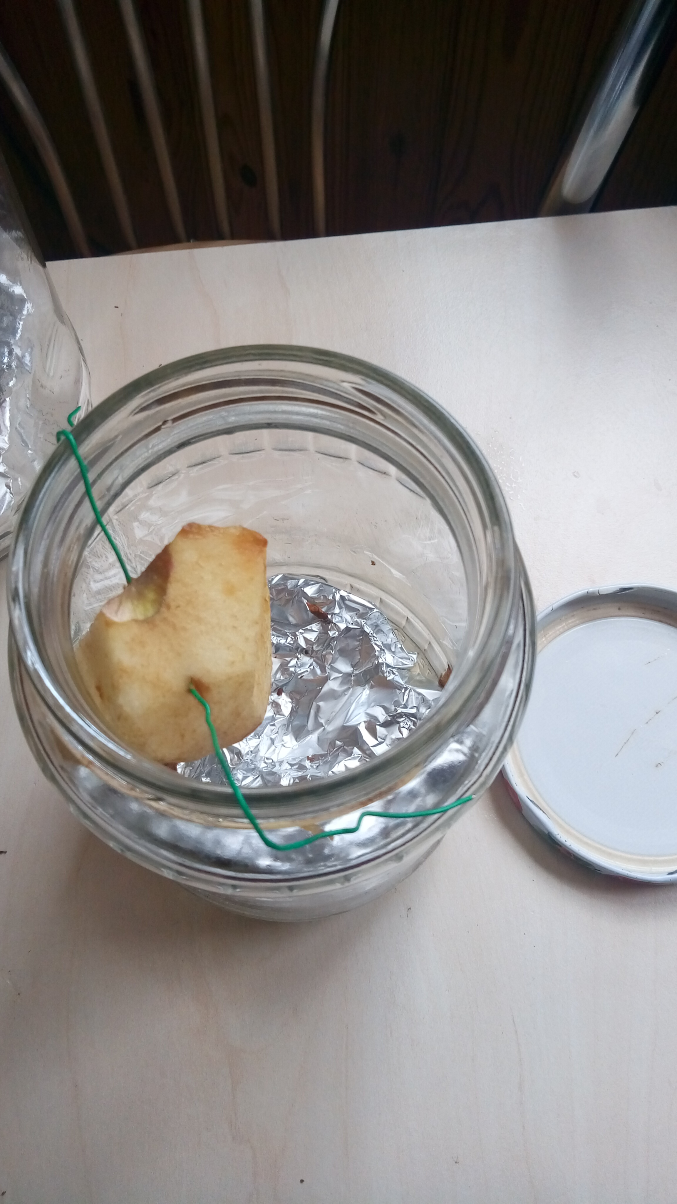 1. Наливаем в банку воды, на дно, немного (0.5 -1 см)
