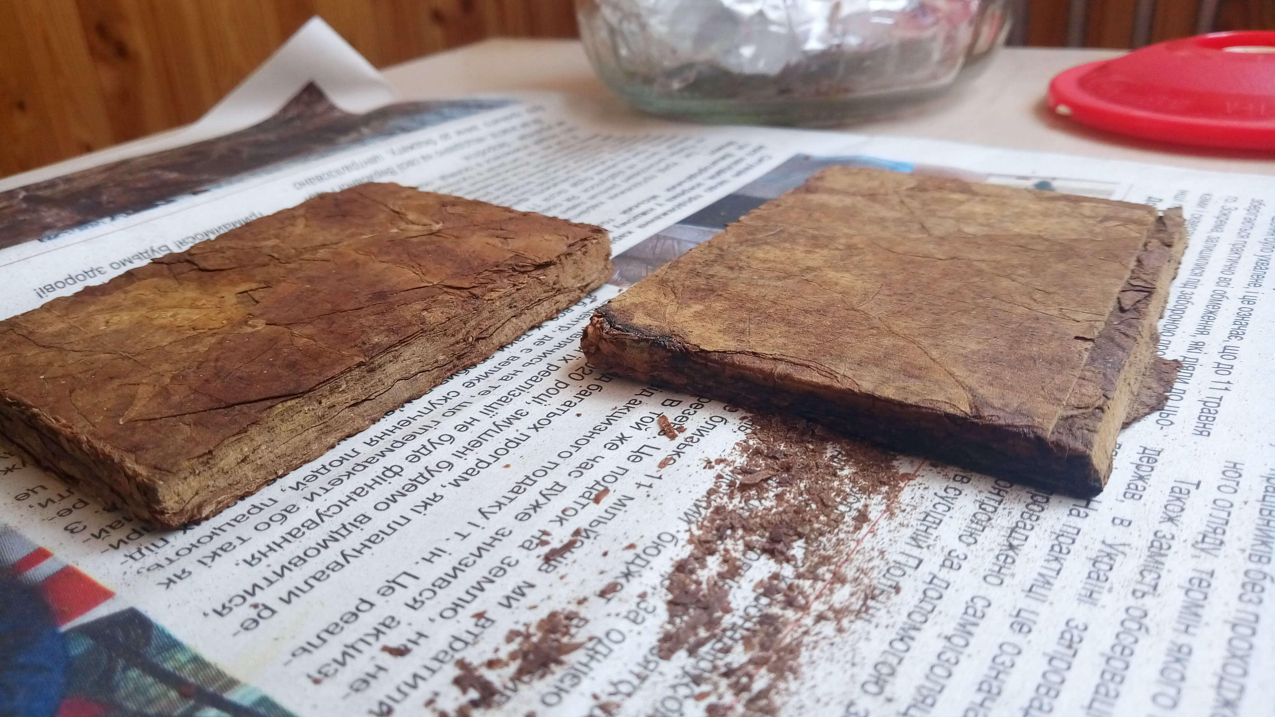 - нарезать тонкой полоской ножом, получим табак для трубки (подсушить, покрошить и для гильзы пойдет)
