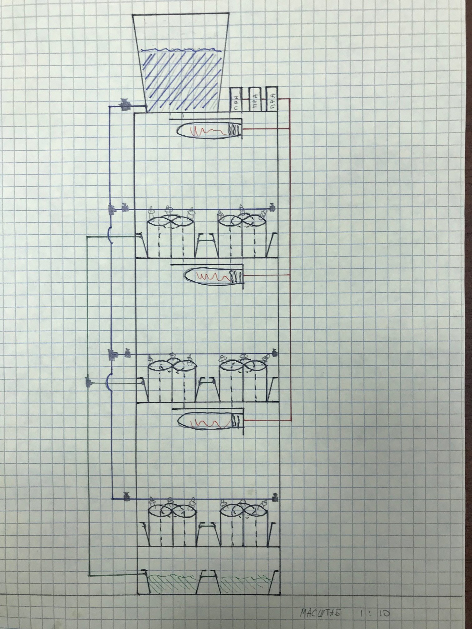 Друзья, для выращивания невысоких культурных растений (земляника, штамбовые томаты итп) я планирую оснастить небольшой стеллаж 200х60 капельным поливом (Tropf Blumat) и ДНАт освещением. По моим расчетам должно получиться выращивать 18 растений. Более  подробно как я это себе представляю - нарисовано на картинке. Покритикуйте меня пожалуйста